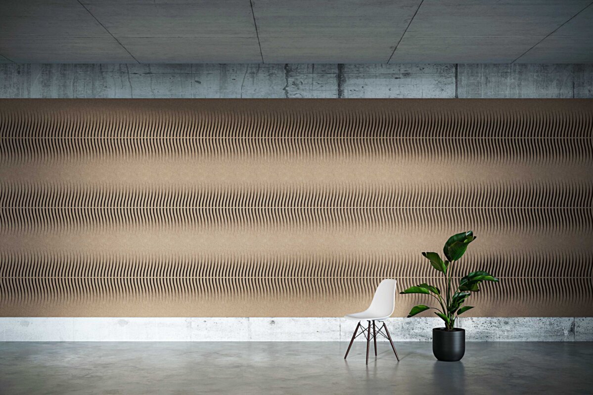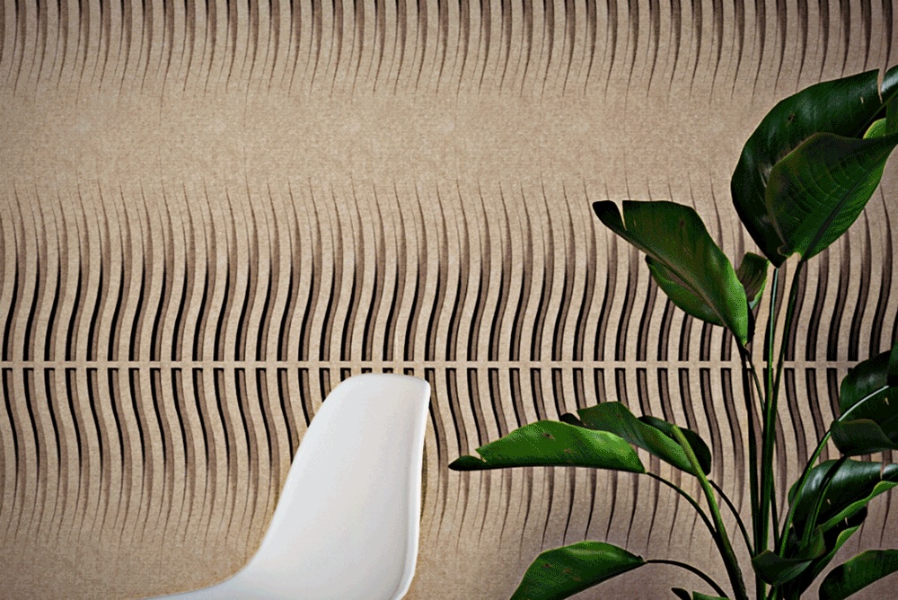 3D akustická stěna z materiálu ECHOBOARD® – Ručně tkaná akustika jako architektonický prvek.