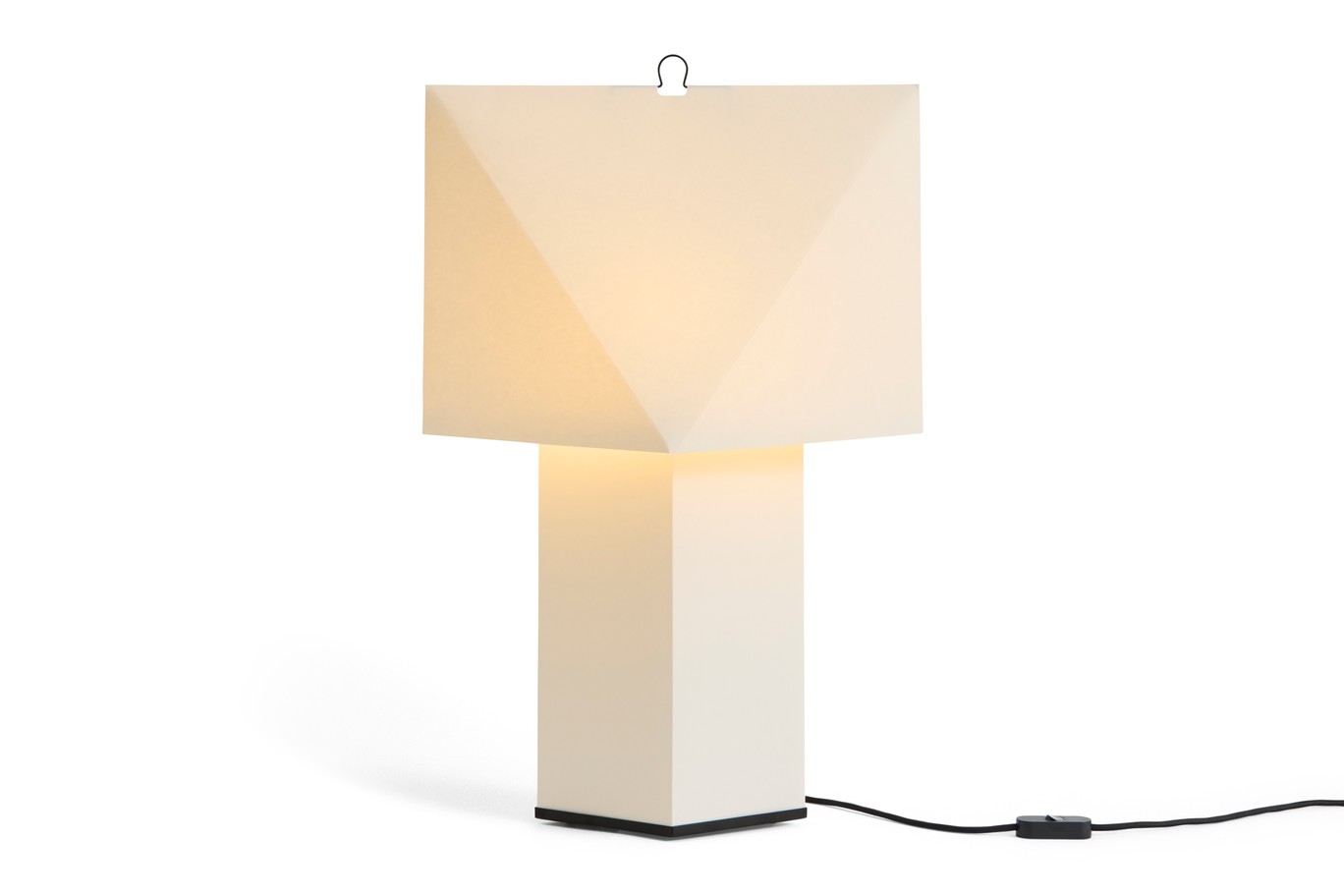 Aplat Table Lamp je lehká, sochařsky pojatá lampa vyrobená převážně ze skládaného papíru. Díky plochému balení si ji uživatel sestavuje sám – přesné linie a úhly postupně vytvářejí objem a dávají vzniknout jednoduché, grafické formě.