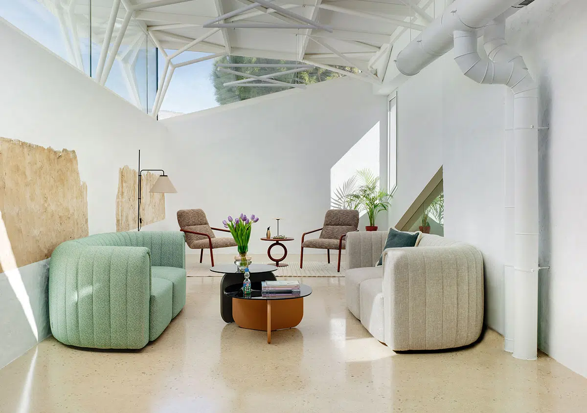 Objem pohovky Core ukazuje hmotu v čistém stavu. Formální design, který připomíná klasicky inspirovaný nábytek, představuje prostřednictvím použitých materiálů také svůj moderní aspekt.
