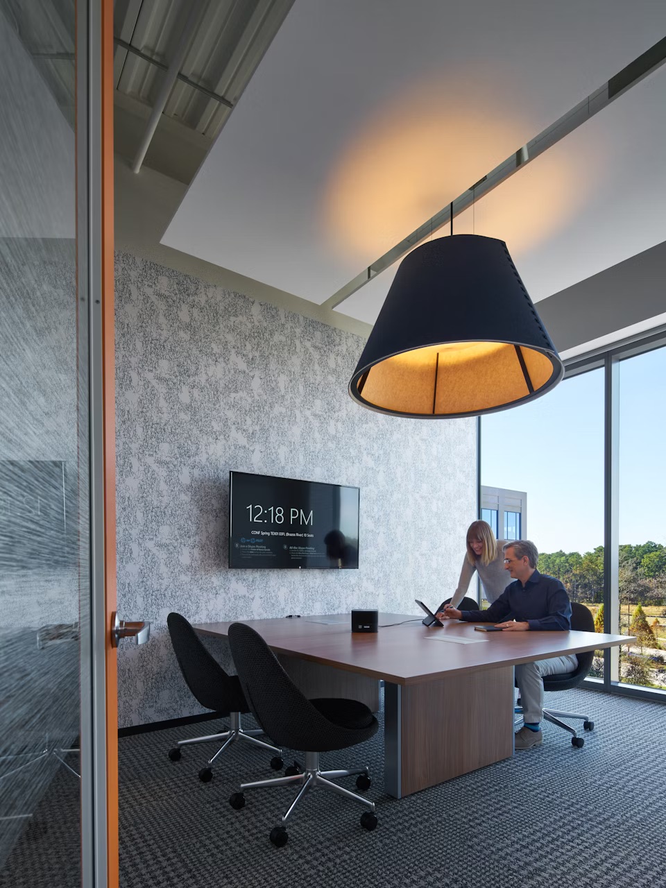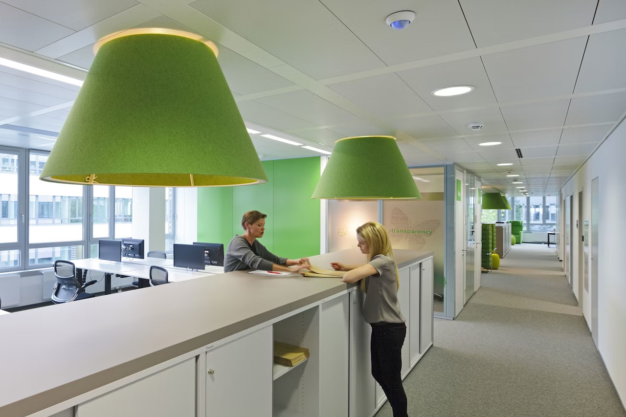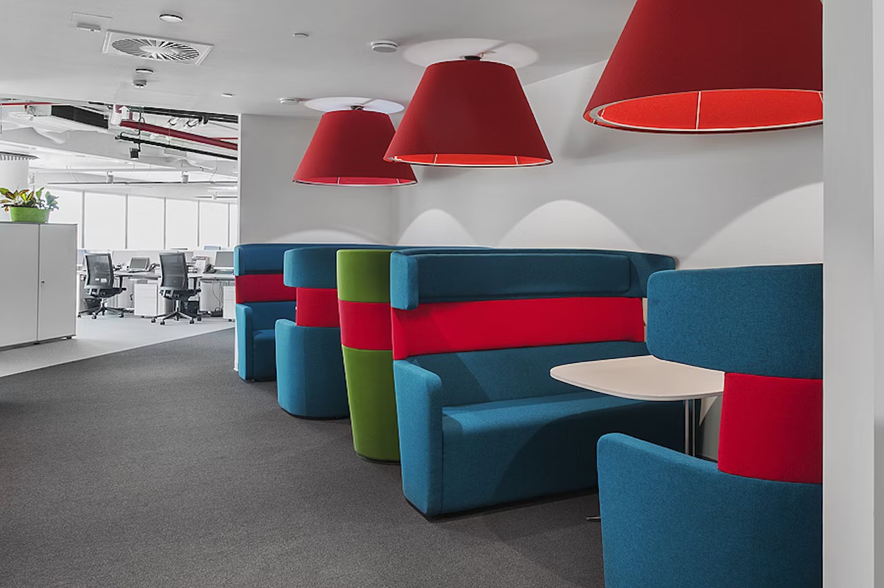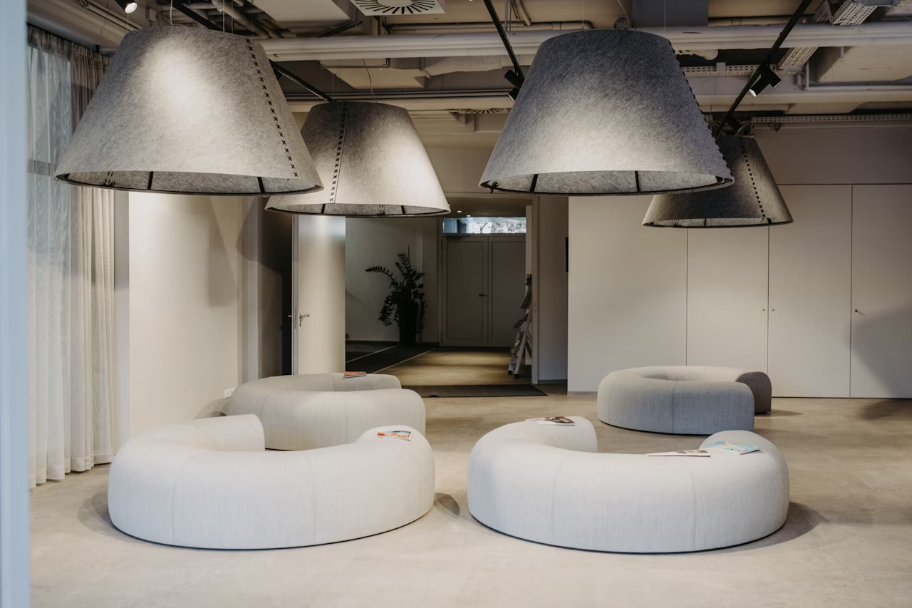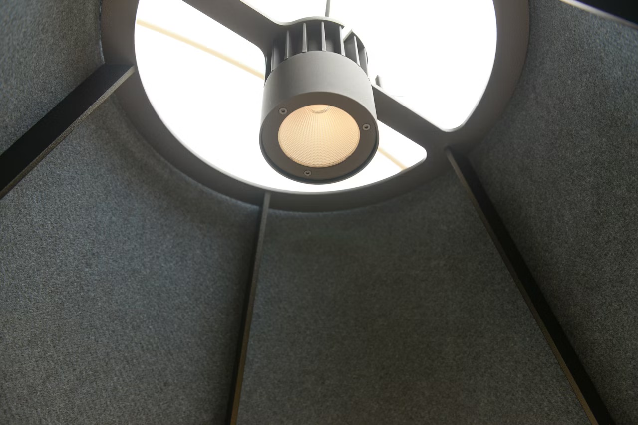 BuzziShade is ideal for open spaces. Nowadays, many open rooms that need acoustic treatment also need better lighting. Both acoustics and lighting influence the personal well-being and are therefore the main contributors to a positive workspace. BuzziShade is made of a coated metal frame upholstered in a wide range of BuzziFelt colors.
