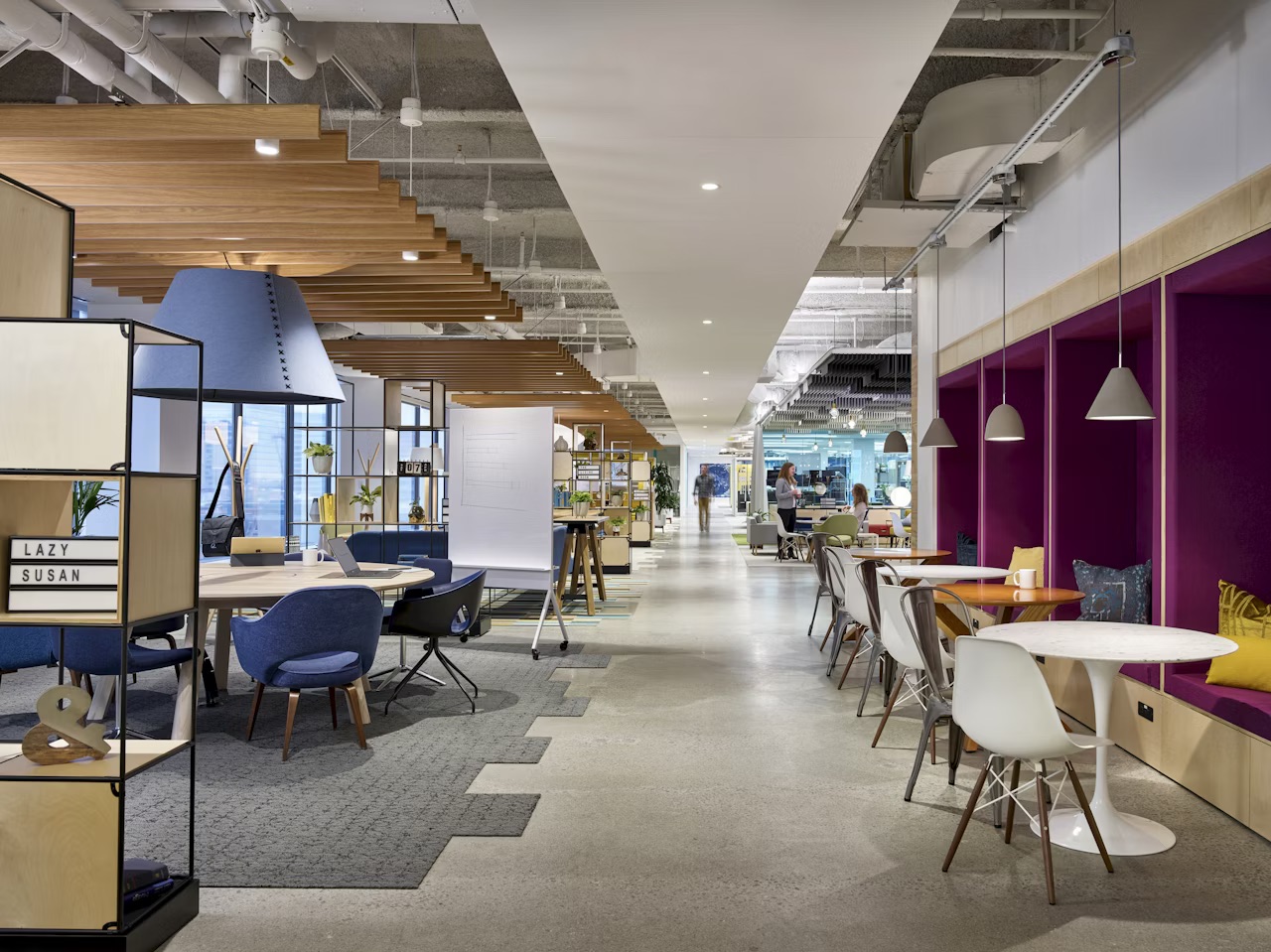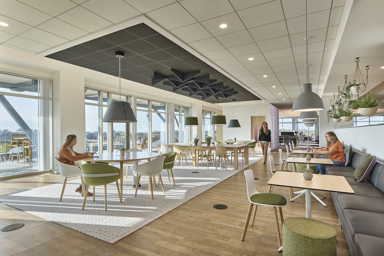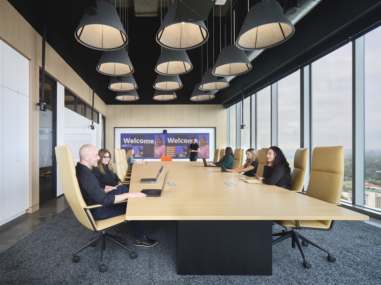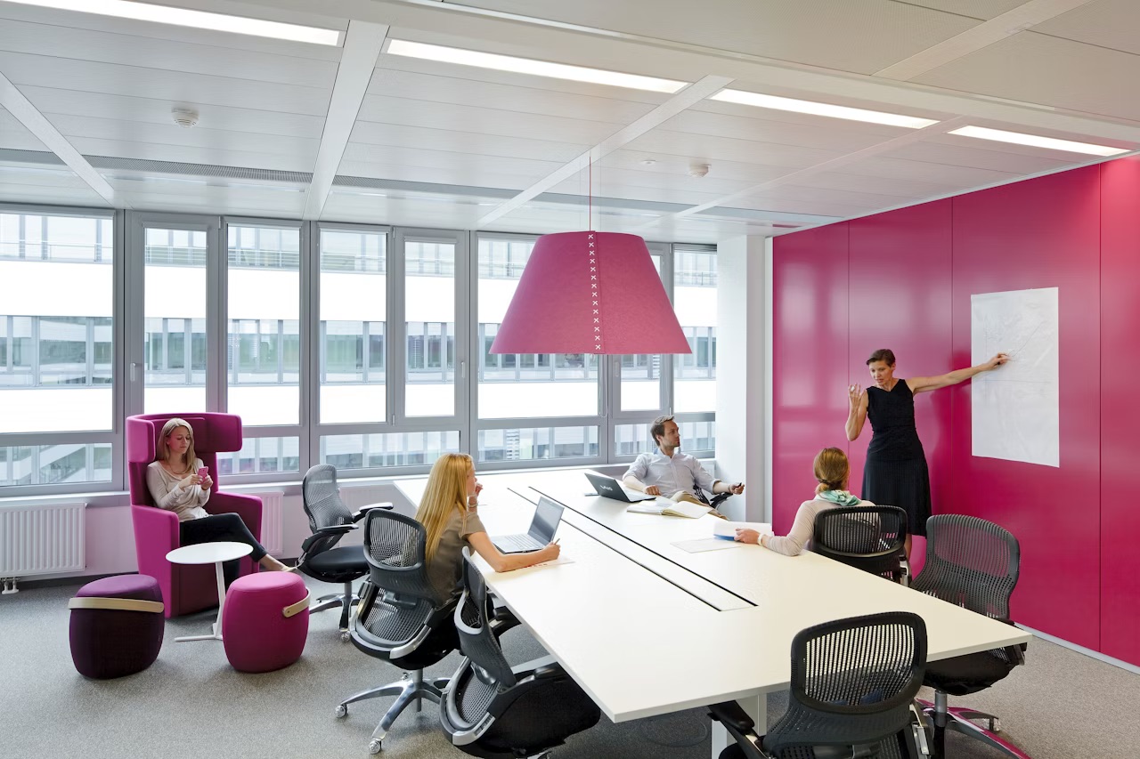 BuzziShade is ideal for open spaces. Nowadays, many open rooms that need acoustic treatment also need better lighting. Both acoustics and lighting influence the personal well-being and are therefore the main contributors to a positive workspace. BuzziShade is made of a coated metal frame upholstered in a wide range of BuzziFelt colors.