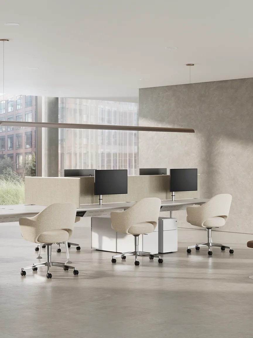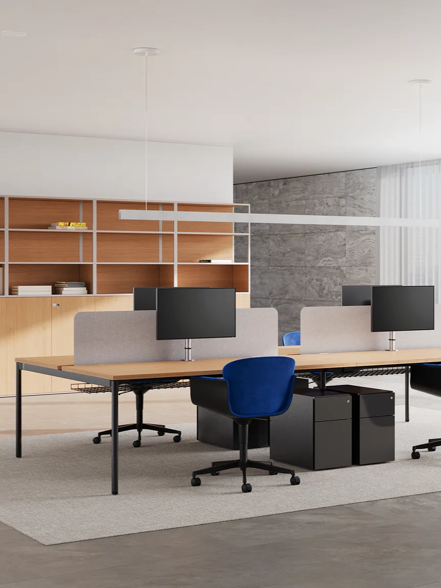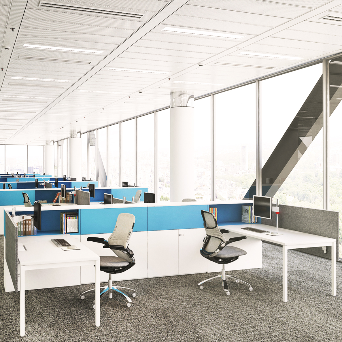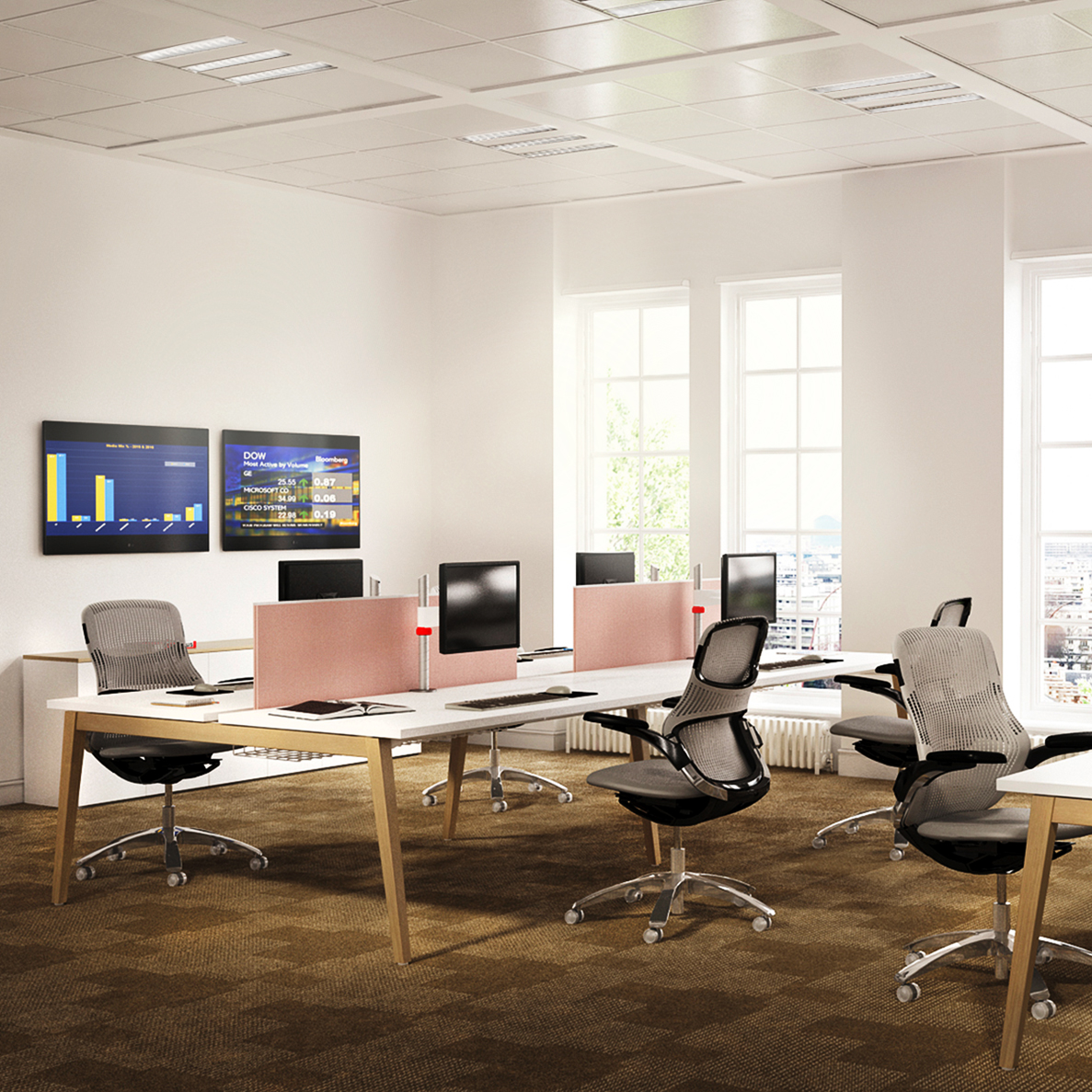 Scope can be tailored to achieve a customised solution that matches your architecture and brand. Select from more than a dozen paint finishes and stains, multiple privacy screening fabrics and metal or wood legs to achieve a custom-designed solution. Softer, more residential detailing on tops and screens, plus inset legs and chamfered edges give work surfaces a lighter aesthetic.