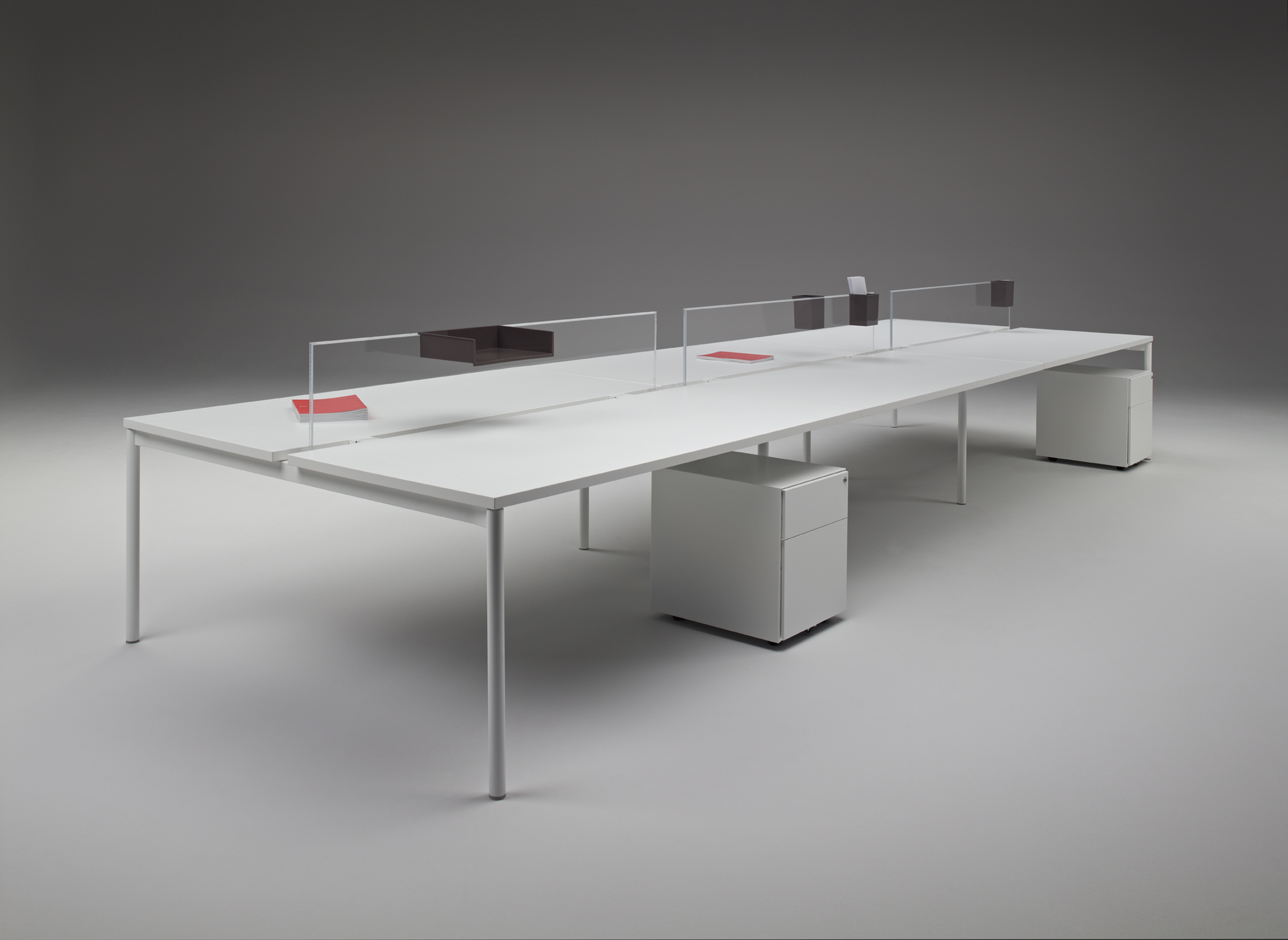 Create the setup that works for you with the Scope set of kitted parts. Whether building team and meeting tables, linear benching, or focused work areas with privacy screening, Scope makes bespoke solutions possible. Its universal design integrates easily with other products, like Knoll Colourfold storage.