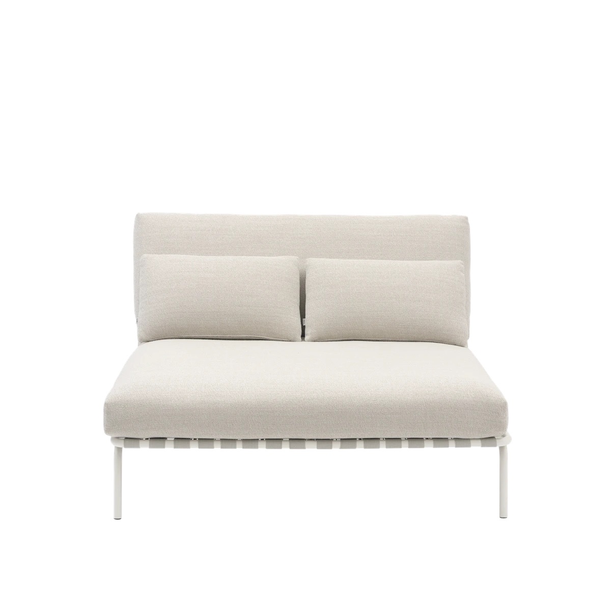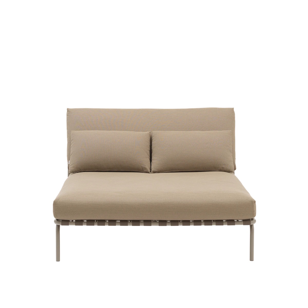 The Settle Lounge Bed w. Armrest invites you to settle into its comfort. With its deep, leaned backrest and extra cushion for added comfort, it's ideal for long, leisurely hours spent unwinding outdoors. Its airy steel frame, complete with visible belts and intricate details, enhances its visual allure from all angles, while its armrests, made from FSC™-certified (FSC-C028824) sapele mahogany wood, add a warm, tactile feel. Settle's steel frame is galvanized, primed, and powder-coated, ensuring corrosion resistance for long-lasting use. The plush cushions, made with quick-dry foam and durable outdoor textiles, offer fast-drying resilience in rain showers and year-round durability when used with an outdoor cover. Available with or without armrests.