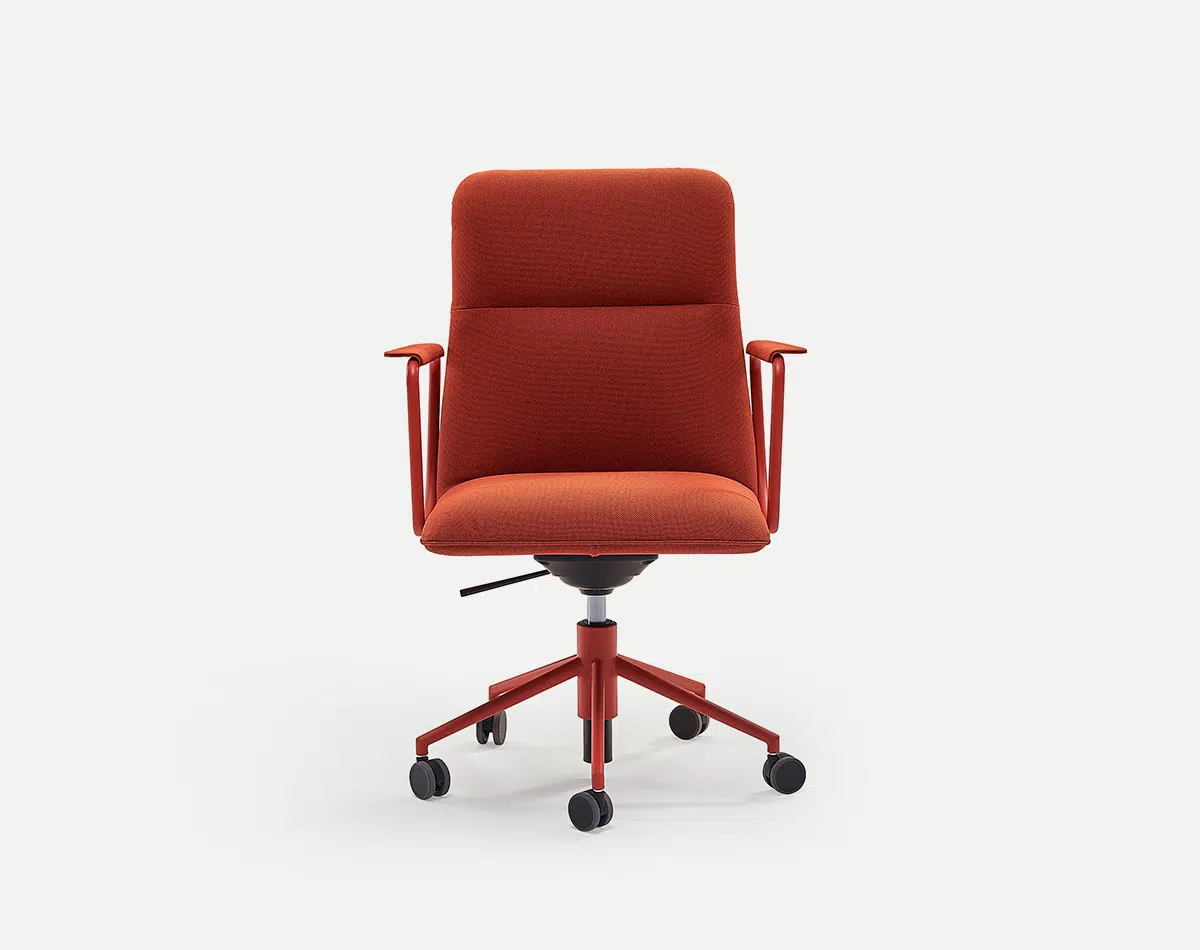 Elle is sophisticated and elegant, as well as strong and full of personality. Its very presence will brighten up any setting. Rafa García’s latest design for Sancal is available in several versions. The most coquettish of them is the light lounge chair while the cosiest is, without a doubt, the wing chair. However, perhaps the most unexpected piece is the executive chair, the first design of the firm in this category. Each type is available in a range of configurations and finishes for working or relaxing at home or in the office. Add a dash of colour by lacquering any of the metal elements from our ample array of 16 colours and use the upholstery to add texture and warmth. This way Elle can be adapted to fit any interior.
