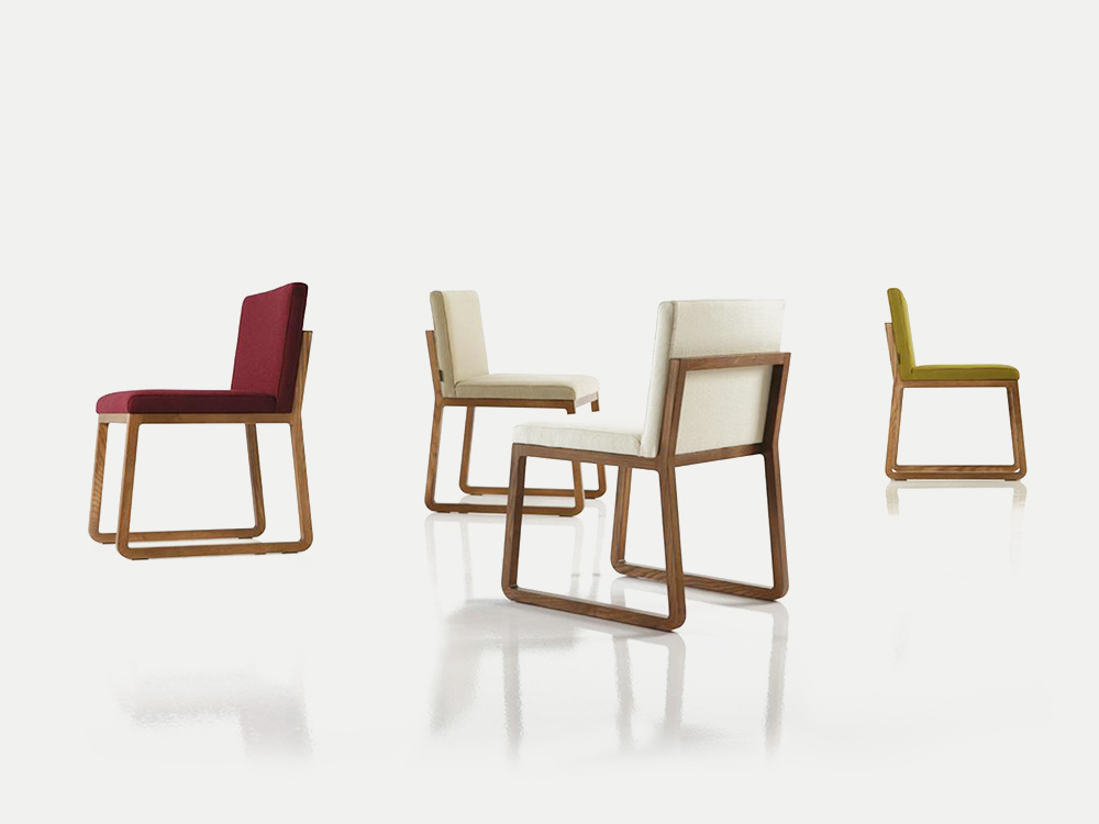 The MIDORI collection includes a chair, armchair, bar stools and pouffes. Its design is gentle and austere, as are the heroines of Japanese stories. The construction is made of ash wood. The material of the cover is fabric or leather.