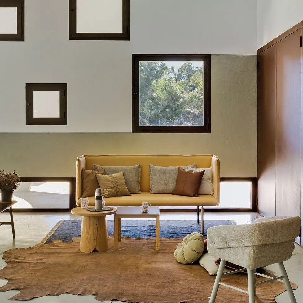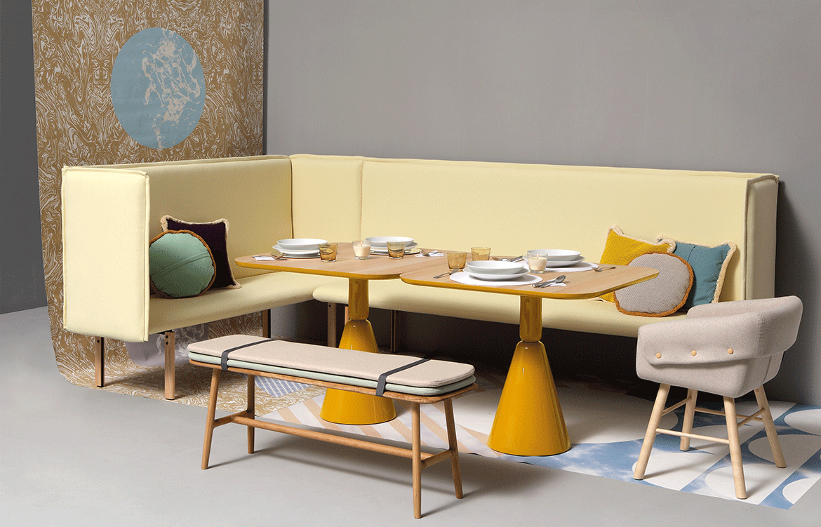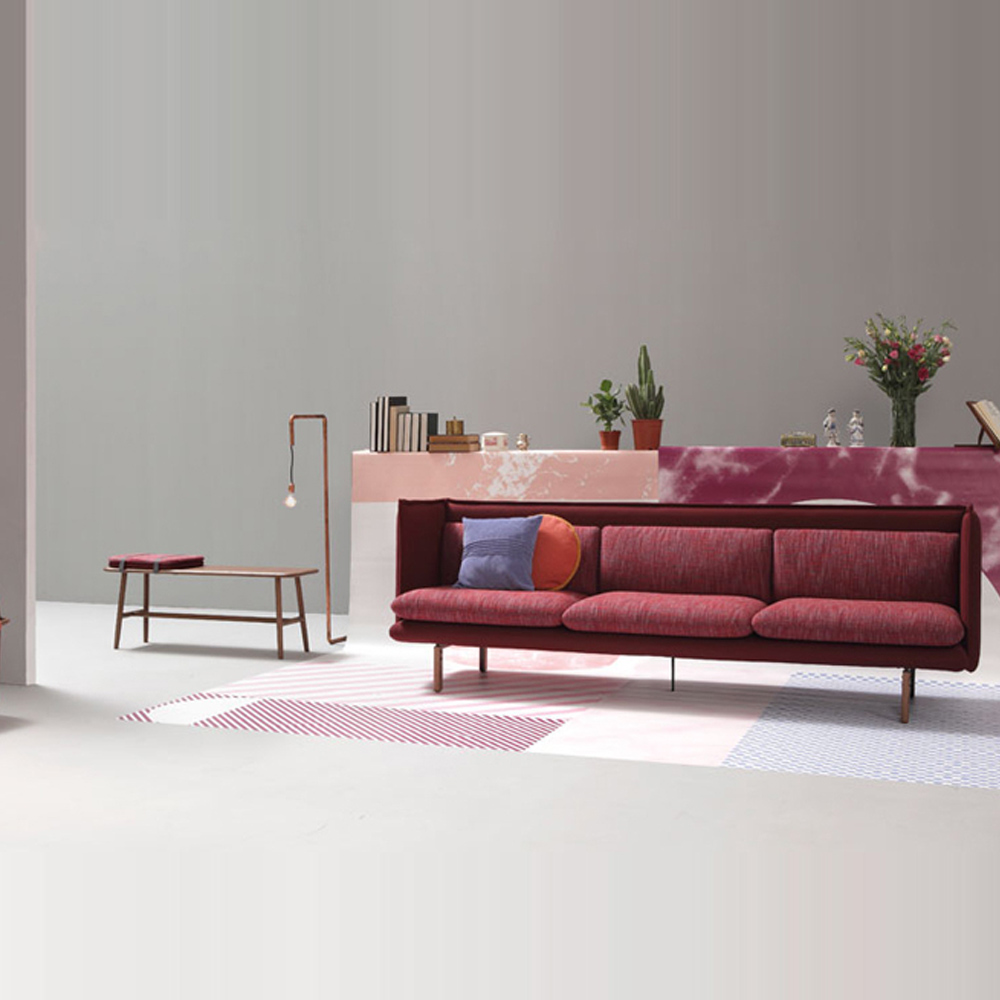 REW is an extremely versatile range and can be used in a variety of projects - for rest, work and eat. The whole range includes chairs, sofas, modules. The feet are available in steel lacquered black, or ash, which can be stained to any of the colours. Designer Rafa also designed a bench and several cushions for this collection.