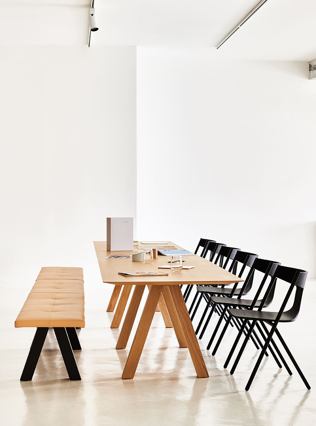 The iconic Trestle table, designed by John Pawson, is adapted to the outdoor scene. Trestle is a versatile table system both in use and design. With an unmistakable minimalist appeal, the table is available in various sizes for outdoor that you can combine with any of our chairs for added functionality. The Trestle table works as a comfortable outdoor meeting point for collaborative spaces, lounges and offices. Working outdoor has never been so easy.