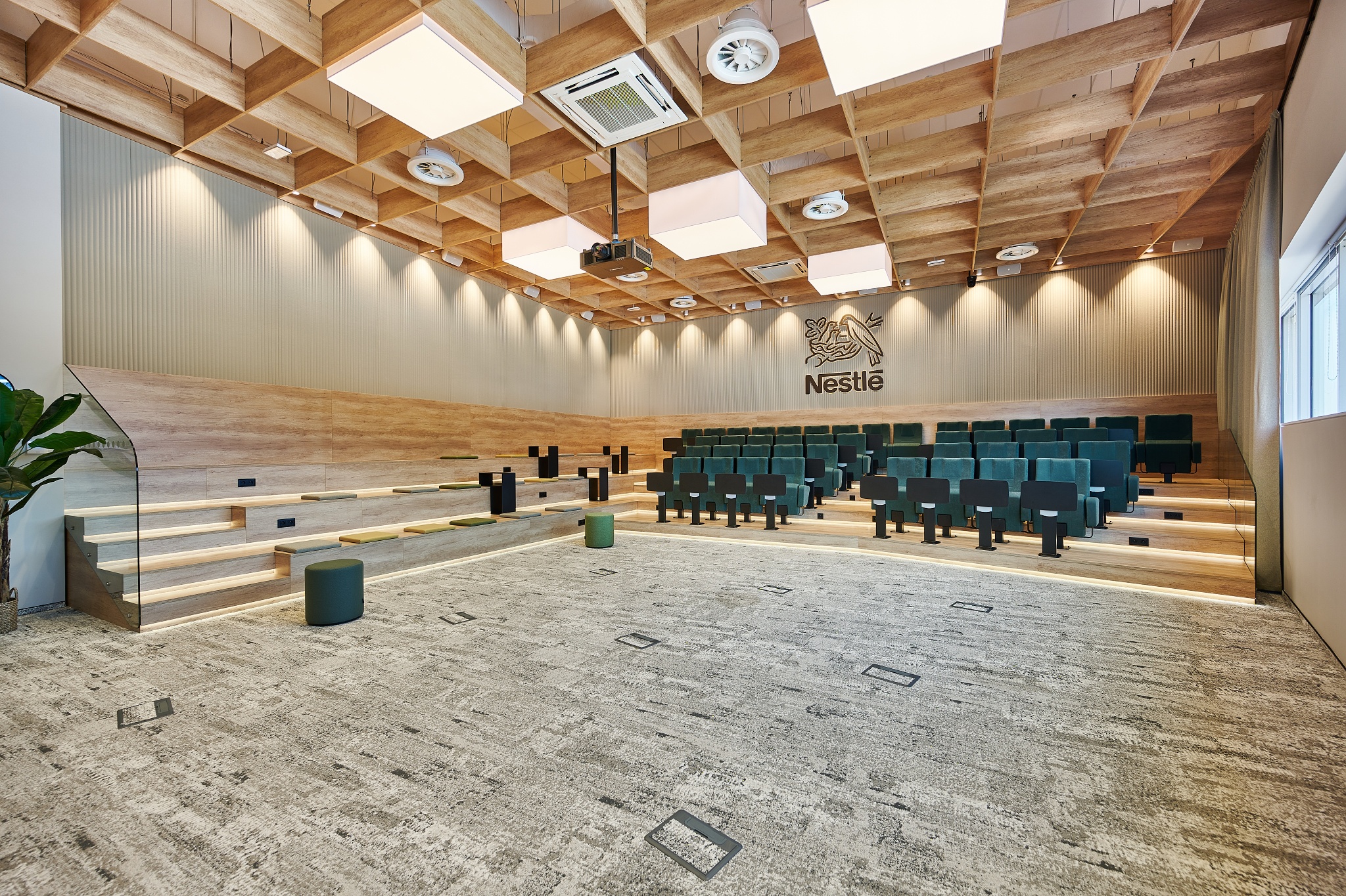 We helped equip the multifunctional lecture hall at Nestlé's headquarters in Prague's Modřany district with mobile, folding METRIX tables from Trilogy. These tables are not only compact and easy to handle, but can also create various table arrangements and compositions through a simple connecting system. They can be configured exactly according to the needs of speakers or as required by specific activities or events. We complemented the tables with very comfortable HermanMiller VERUS conference chairs, which ensure comfortable and ergonomic seating even during lectures lasting several hours.