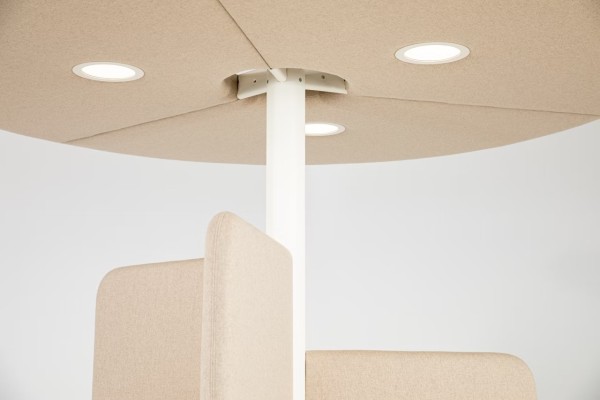 BuzziBrella, vizionářský design Sebastiana Herknera, poskytuje akustický úkryt pro prostory s vysokými stropy. Jedinečný vzhled tohoto řešení inspirovaný deštníkem dodává prostorným interiérům stylový nádech a zároveň zvyšuje absorpci zvuku vytvořením větší plochy pro zachycení zvukových vln.