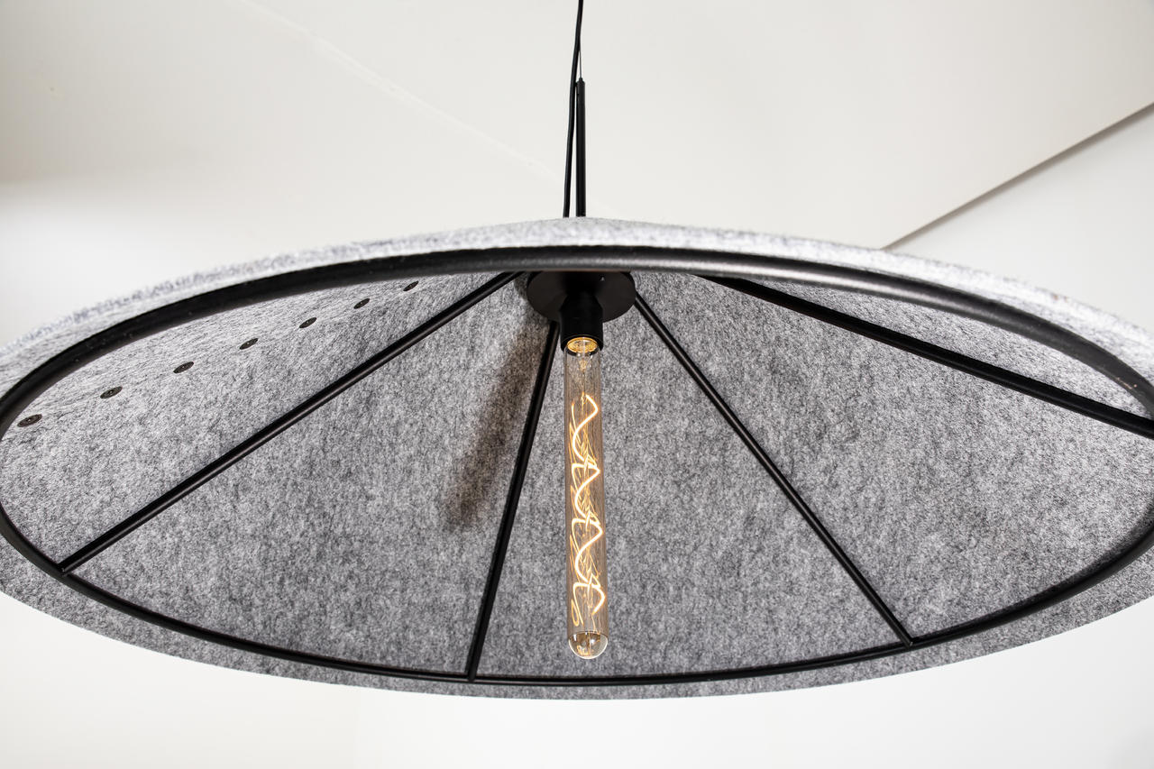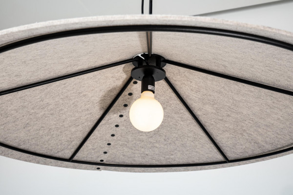 Seznamte se s tímto klasickým, ale originálním osvětlením snižujícím hluk, které nabízí to nejlepší z obou světů: světlo a ticho. Závěsné svítidlo ve tvaru kužele z měkkého materiálu BuzziFelt nabízí elegantní řešení designu, osvětlení a silného akustického výkonu.