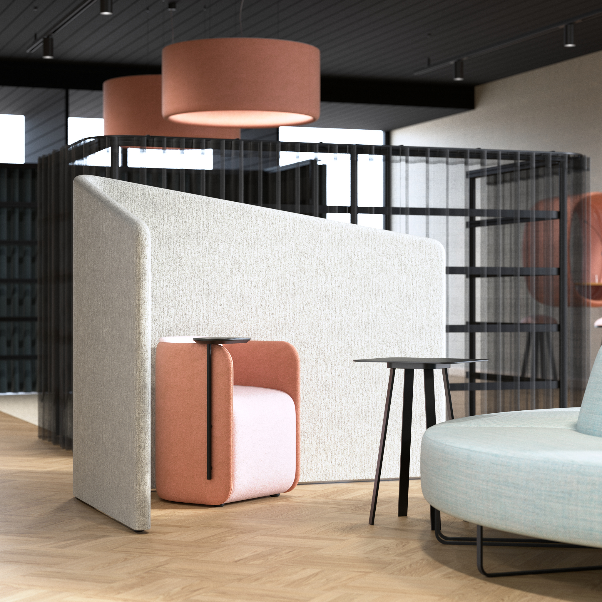 Hledáte jednoduchý a efektivní způsob vytváření soukromých pracovních oblastí, menších prostor pro spolupráci ve vaší současné kanceláři? BuzziShield Hook nevytváří chladnou atmosféru jako jeho skleněné nebo plastové protějšky. Akustické řešení nejen pomáhá zmírnit hluk, ale také přidává nečekaný designový prvek do jakéhokoli pracovního prostoru díky svému objemnému čalouněnému tělu a elegantní křivce.