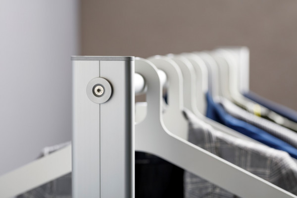 Věšák Round20 Alu má hliníkovou rozpěru a stabilní ocelovou základnu s kolečky. Přední kolečka jsou také vybavena brzdami. Stojany jsou k dispozici v bílém nebo eloxovaném hliníku. Horizontální tyče poskytují dostatek prostoru pro háčky a závěsy. Prvky Round20 Alu jsou k dispozici v různých šířkách a lze je dokonale kombinovat se všemi produkty z řady Round20.