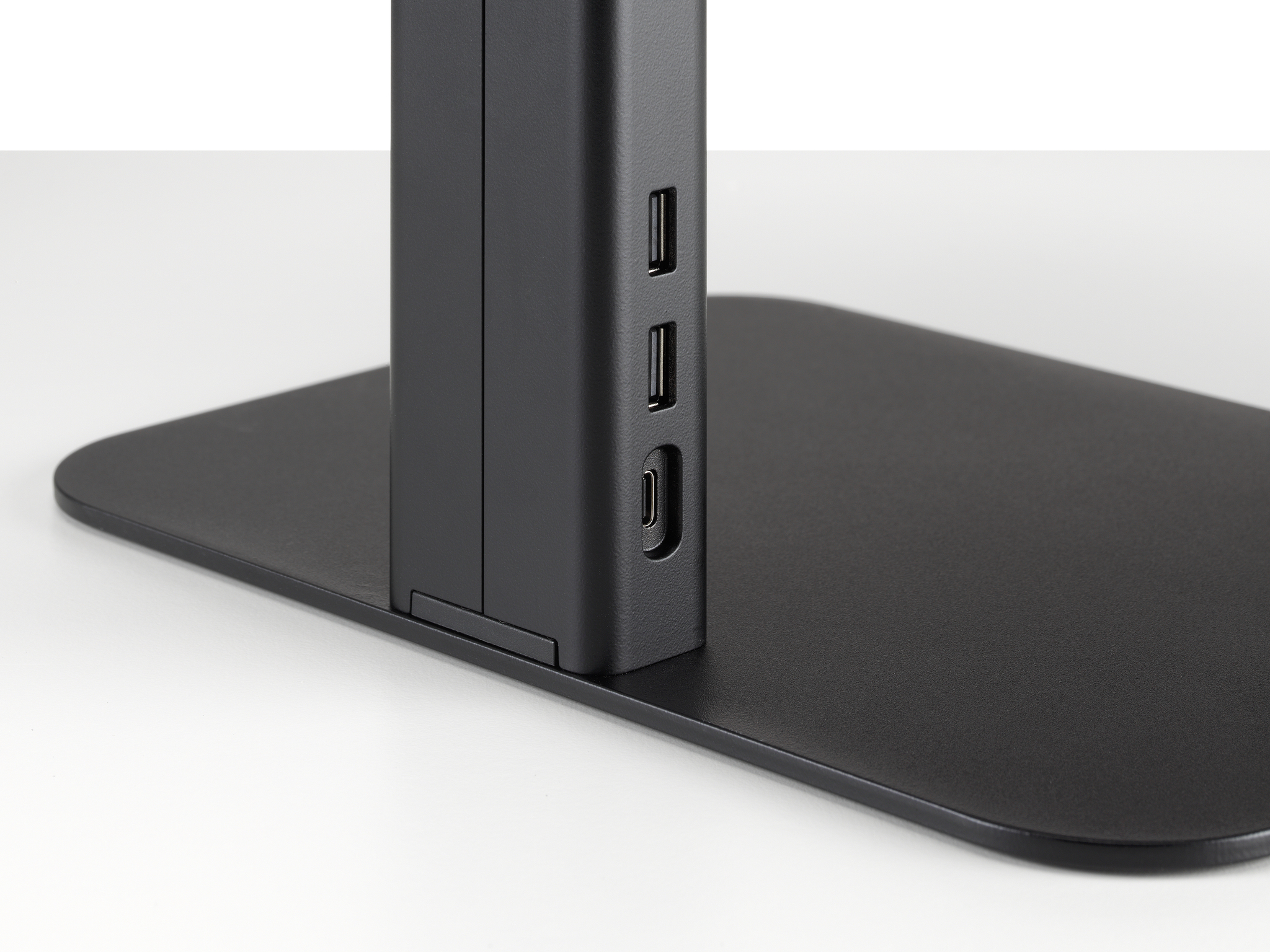 Stojan zároveň nabízí chytré vedení kabeláže – klávesnici, myš i napájení notebooku připojíte přes jediný kabel, který lze při nečinnosti elegantně skrýt pomocí integrovaného klipu pod pracovní plochou.