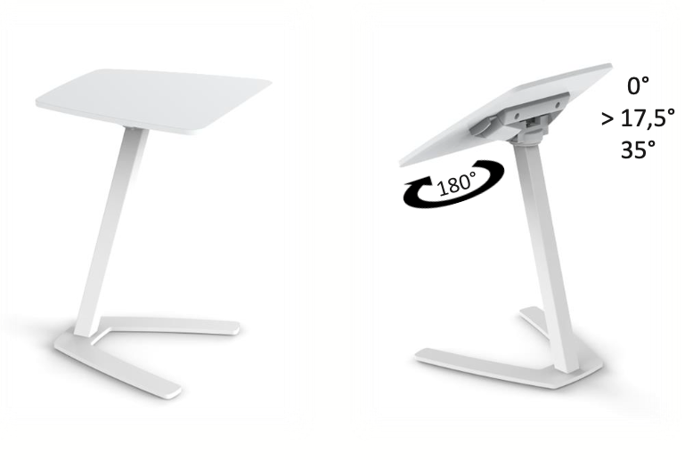 Rám stolu je vyroben z vysoce kvalitní oceli a můžete si vybrat mezi elegantní černou strukturou nebo čistě bílou práškovou povrchovou úpravou. Je vybaven mechanismem umožňujícím nastavit náklon stolové desky v rozmezí od 0° do 17,5° až 35° a zároveň je možné ho otáčet o 180°. Tento multifunkční rám je ideální pro stolní desky s rozměry až přibližně 500 x 500 mm. U výškově stavitelné verze můžete bez námahy nastavit výšku v rozsahu 630 až 1030 mm.