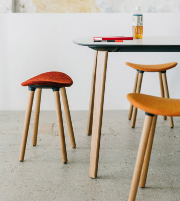 Dubovou či bukovou stoličku lze kombinovat s vícero povrchovými úpravami. Je dodávána ve třech výškách: vysoké, střední a nižší, a proto představuje velkou variabilitu. Využití tedy najde v široké škále prostorů, zejména tam, kde je málo volného místa.