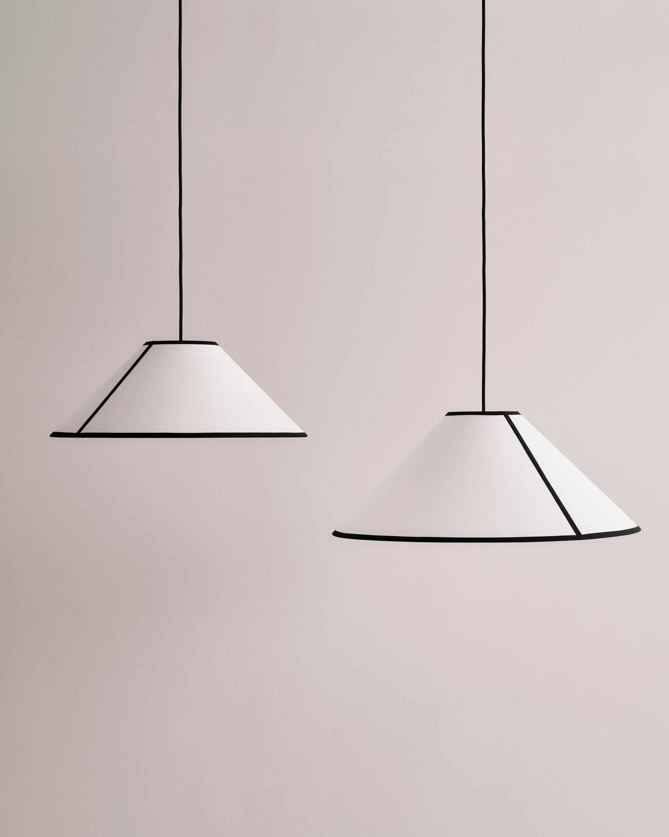Navržena pro značku HAY designérkou Anou Kraš, lampy a lustry Ava Pyramid spojují archetypální tvar lampy s výrazným, grafickým pojetím a nabízí tak moderní interpretaci klasických světel. Jsou vyrobena z materiálu ECOPET™ získaného z recyklovaného plastu PET, přičemž poloprůsvitný podstavec i stínidlo mají jemně strukturovaný povrch, který zvýrazňuje kontrastní textilní lemování. Jednoduchý, a přitom výrazný vzhled spolu s měkkým, ambientním světlem umožňuje lampě snadno zapadnout do nejrůznějších částí domova – od poliček a okenních parapetů po ložnice, chodby, obývací i jídelní prostory.