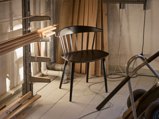 Židle J104 Jørgena Bækmarka byla navržena jako kříženec mezi jídelní židlí a lehkou židlí. Reprodukce této klasiky od HAY je vytvořena v masivním buku s různými matnými nebo lakovanými povrchy.