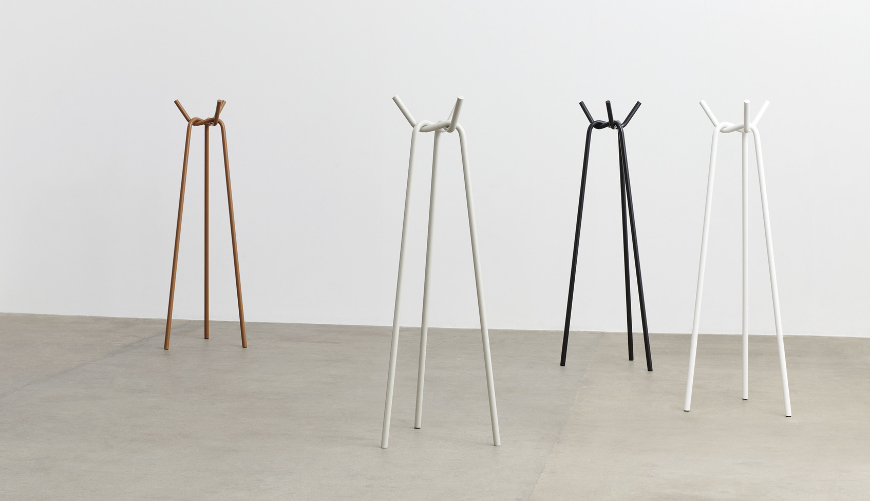 Knit, navržený Japoncem Jinem Kuramotem, je jednoduchý a ikonický věšák na kabáty s výrazným sochařským designem. Skládá se ze tří práškově lakovaných ocelových trubek, které jsou propojeny trojrozměrným způsobem. Trubky jsou bezpečně „spleteny“ dohromady, aby se navzájem podpíraly a vytvářely sílu těla. Inspirováno hmatovým zážitkem dotýkání se materiálů a experimentálními procesy ohýbání a pletení. Díky vysokému lesku, poutá Knit k sobě pozornost a může tak svou osobitou skulpturností oživit jinak monotónní a jednolité prostory.