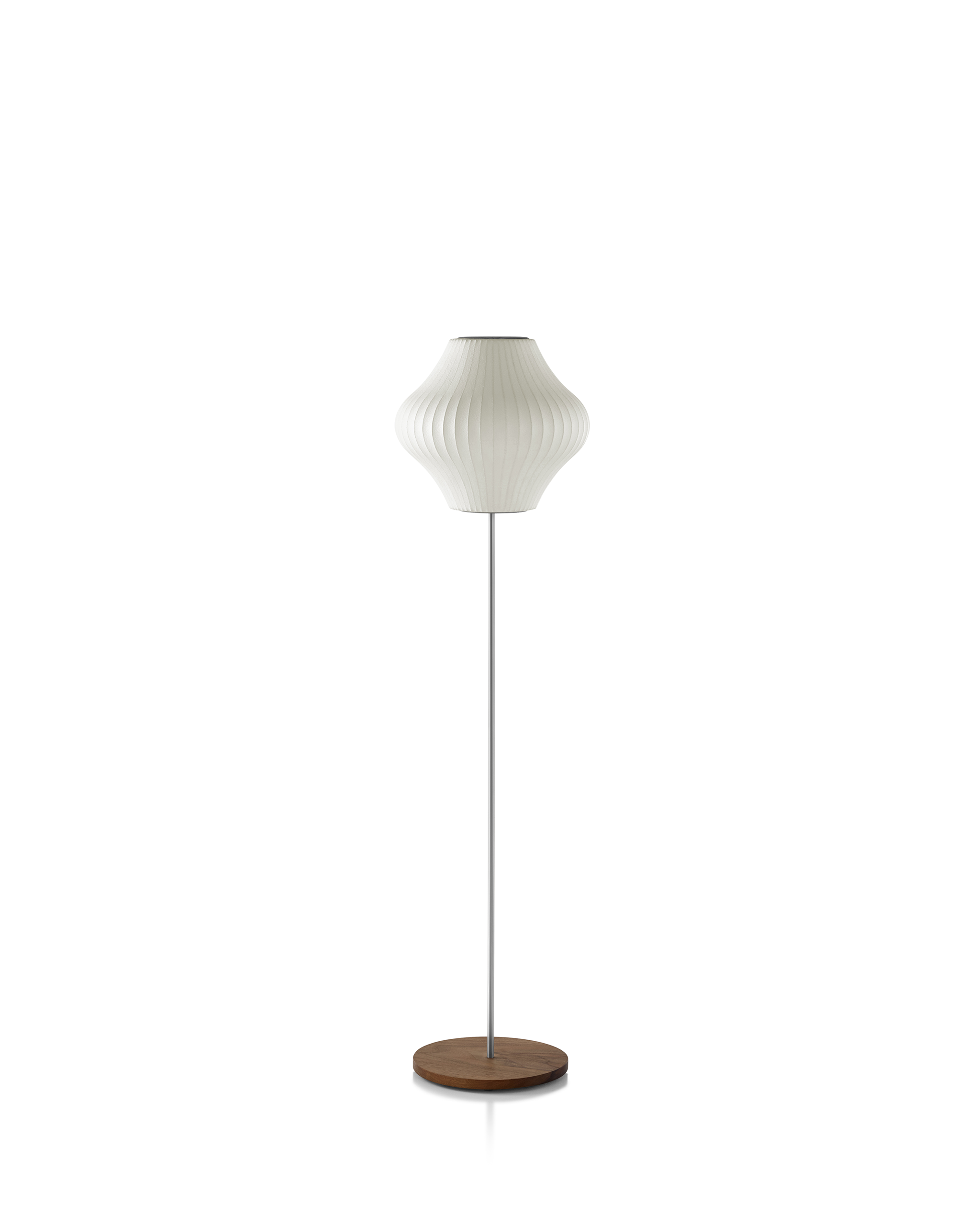 Tripod -stojící lampa s kovovými nožkami a Lotus - stojací lampa se základnou ze dřeva nebo kovu. Navrhl George Nelson v roce 1952.