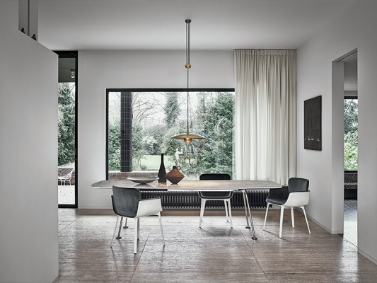 Kolekce KN se nyní rozšiřuje o KN06, kolekci sedadel založenou na decentním designu a stylistickém zdokonalení. KN06 je k dispozici v řadě variant a lze jej perfektně sladit s jakýmkoli prostředím, od soukromých domů až po zasedací místnosti. Díky speciální technologii lisování zprostředkovává KN06 pocit dokonalé rovnováhy mezi tradicí a moderností. Skořepina je výsledkem sofistikovaného výrobního procesu a citlivě spočívá na čtyřech nohách z litého hliníku nebo na výškově nastavitelném otočném podstavci. Čtyřnohá základna je z hliníku, lakované v lesklé bílé nebo černé barvě. Dostupné v široké škále látek a kůží.