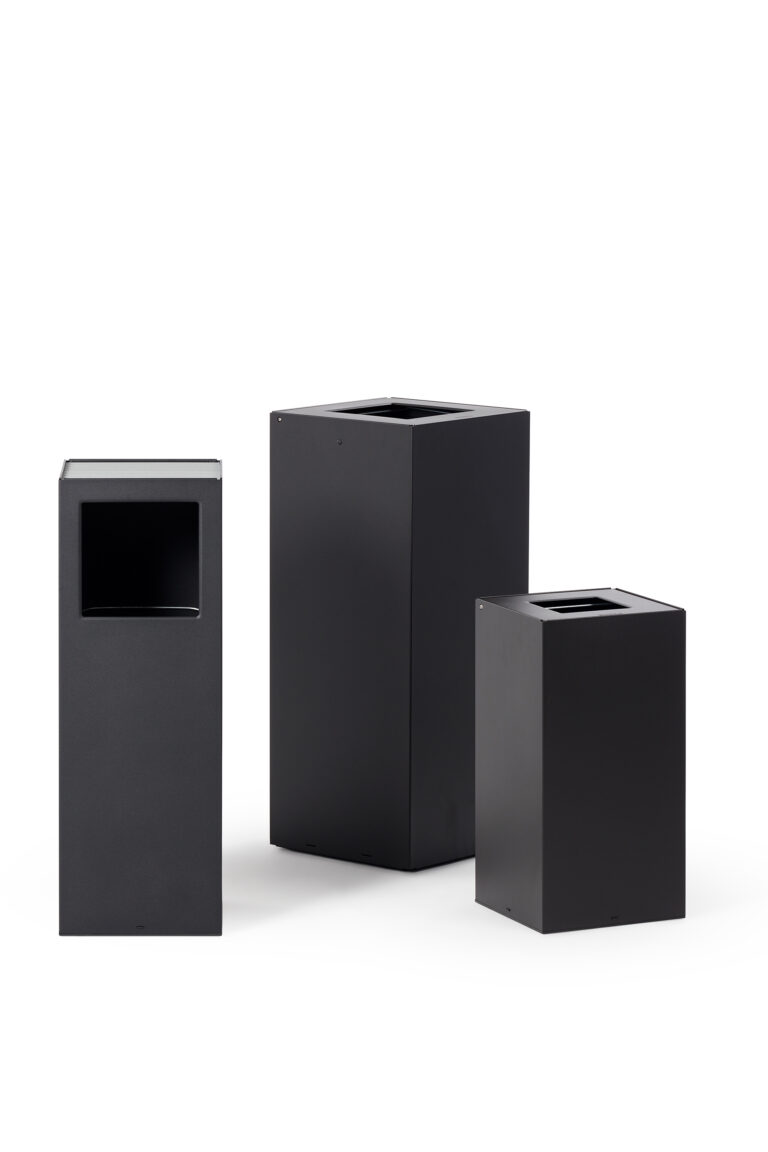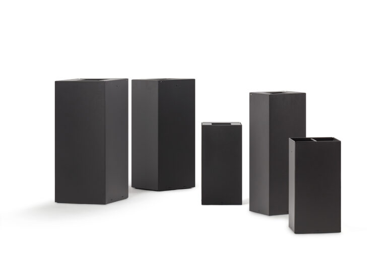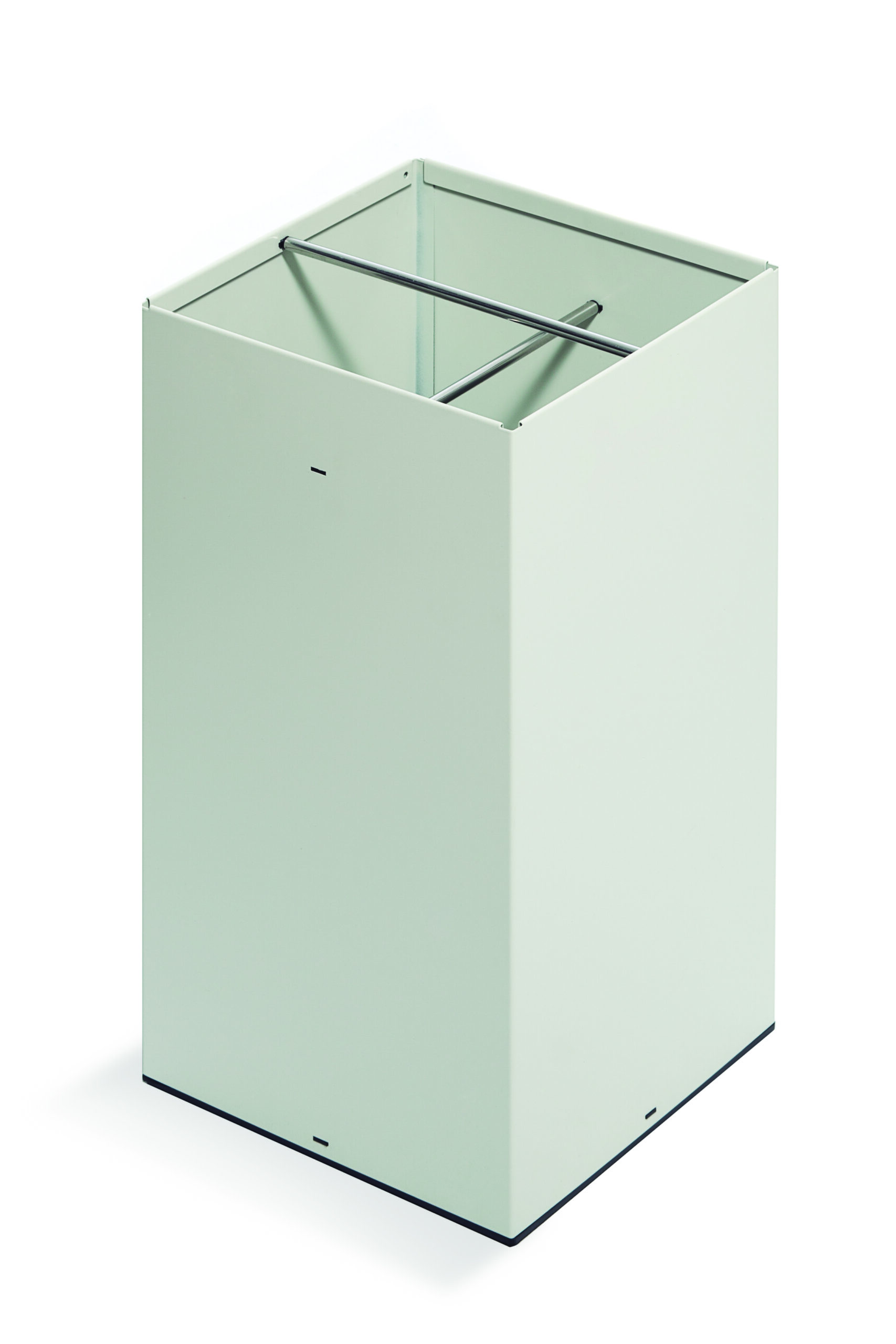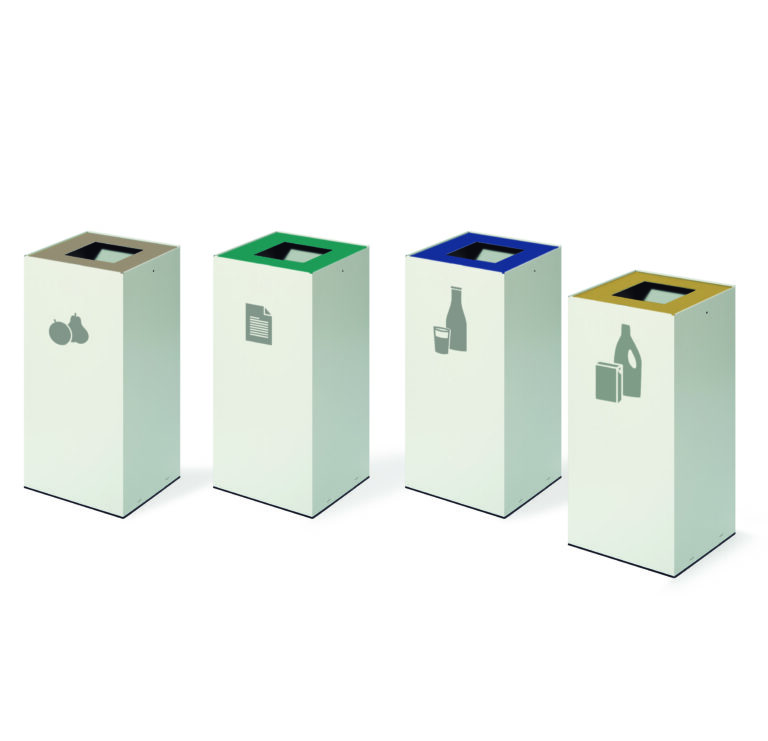 Vyrobeno z oceli s epoxidovým nástřikem, s víky z oceli nebo eloxovaného hliníku a s podstavou z ABS nebo oceli – podle konkrétního modelu. Dostupné v neutrálních povrchových úpravách (bílá nebo černá) i v nerezu. Barvy pro třídění odpadu: zelená, žlutá, béžová, modrá.