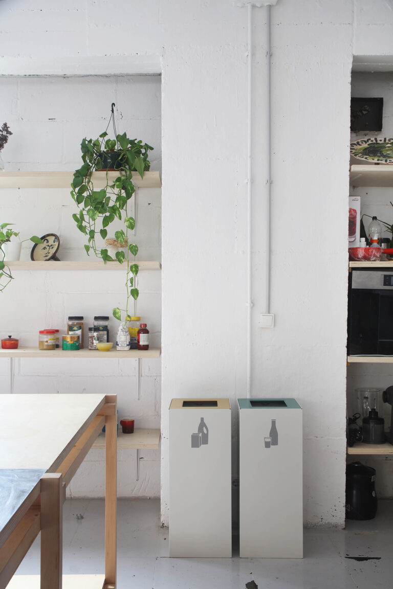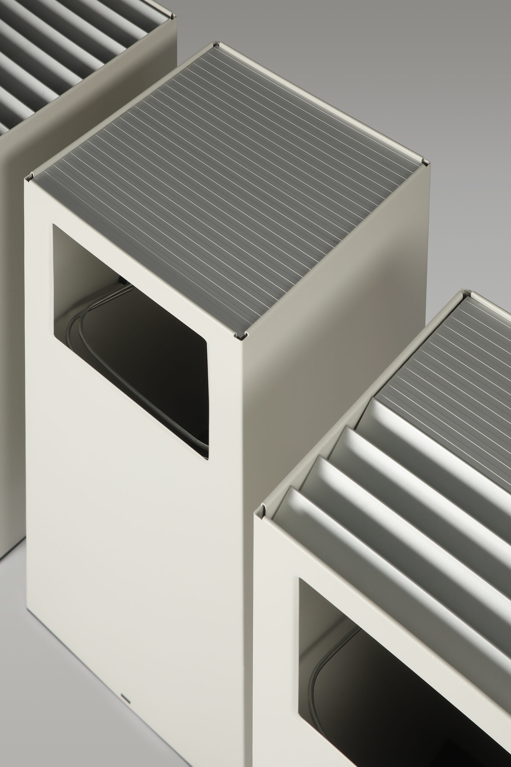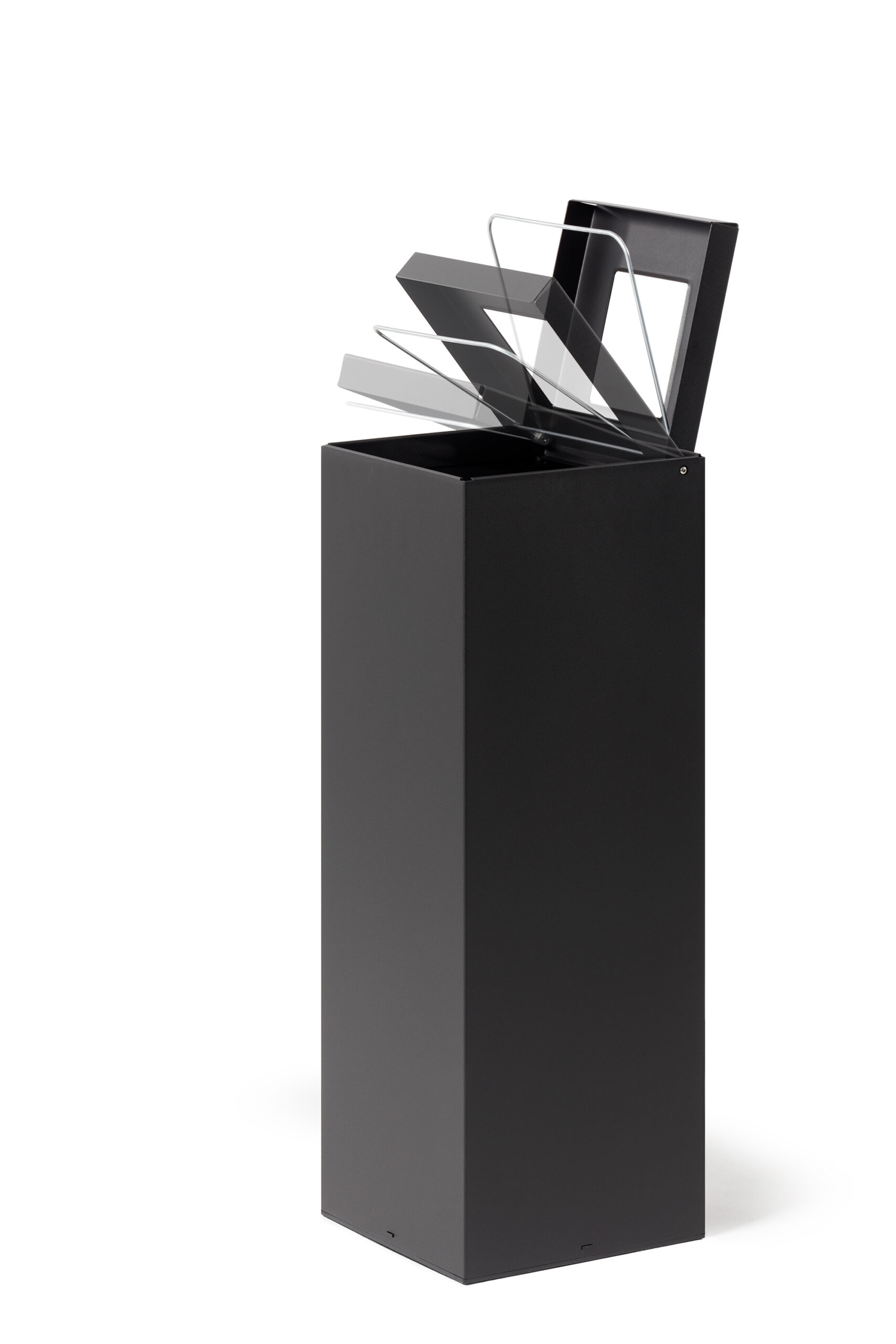 Vyrobeno z oceli s epoxidovým nástřikem, s víky z oceli nebo eloxovaného hliníku a s podstavou z ABS nebo oceli – podle konkrétního modelu. Dostupné v neutrálních povrchových úpravách (bílá nebo černá) i v nerezu. Barvy pro třídění odpadu: zelená, žlutá, béžová, modrá.