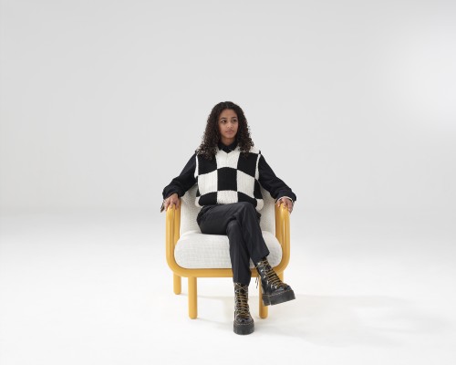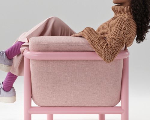 Percy - jedinečná židle, která spojuje pouze dva prvky, aby vytvořila útulné sezení: odvážný grafický obrys rámu a měkké, polstrované čalounění.