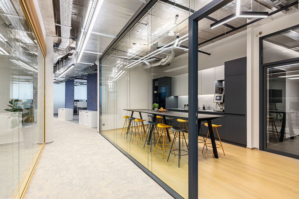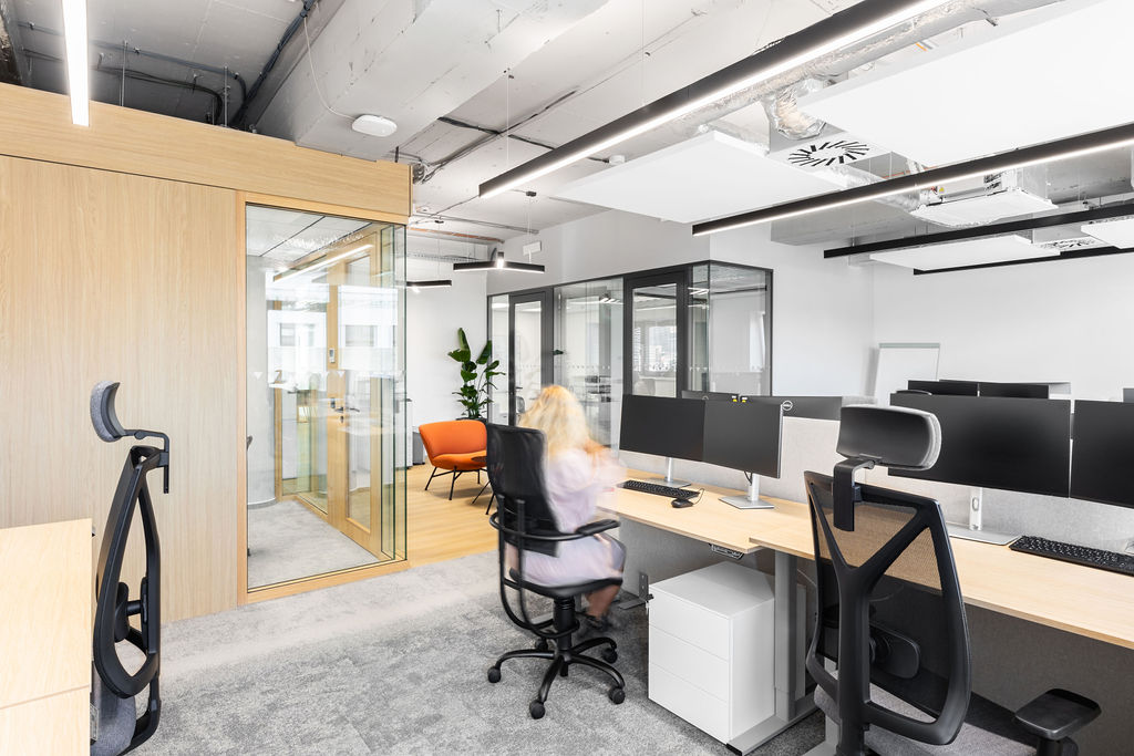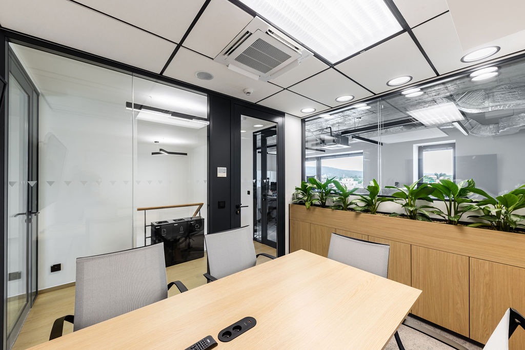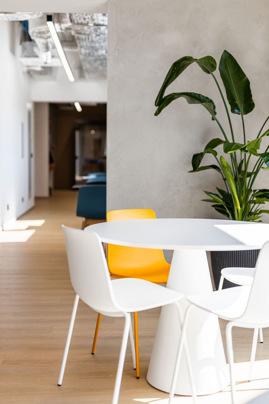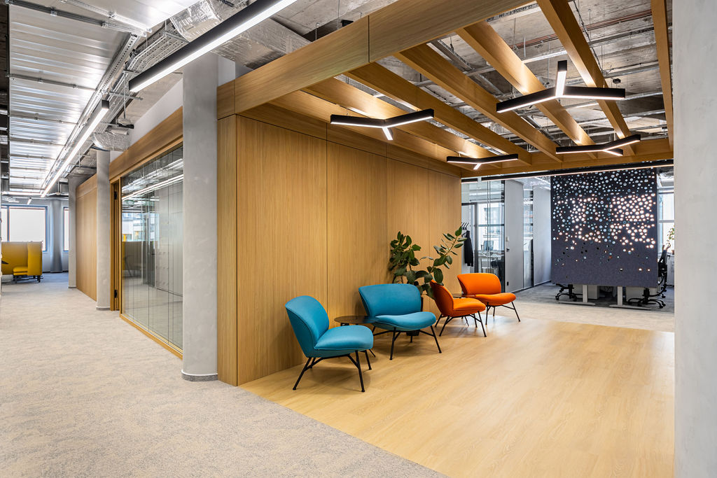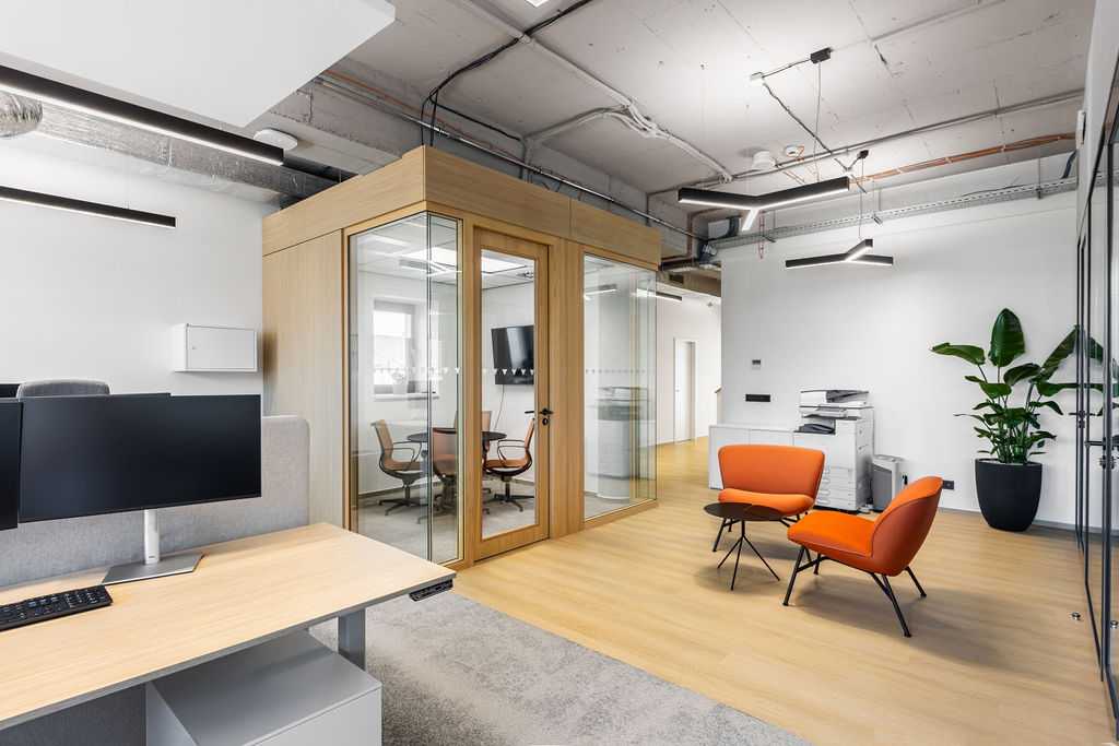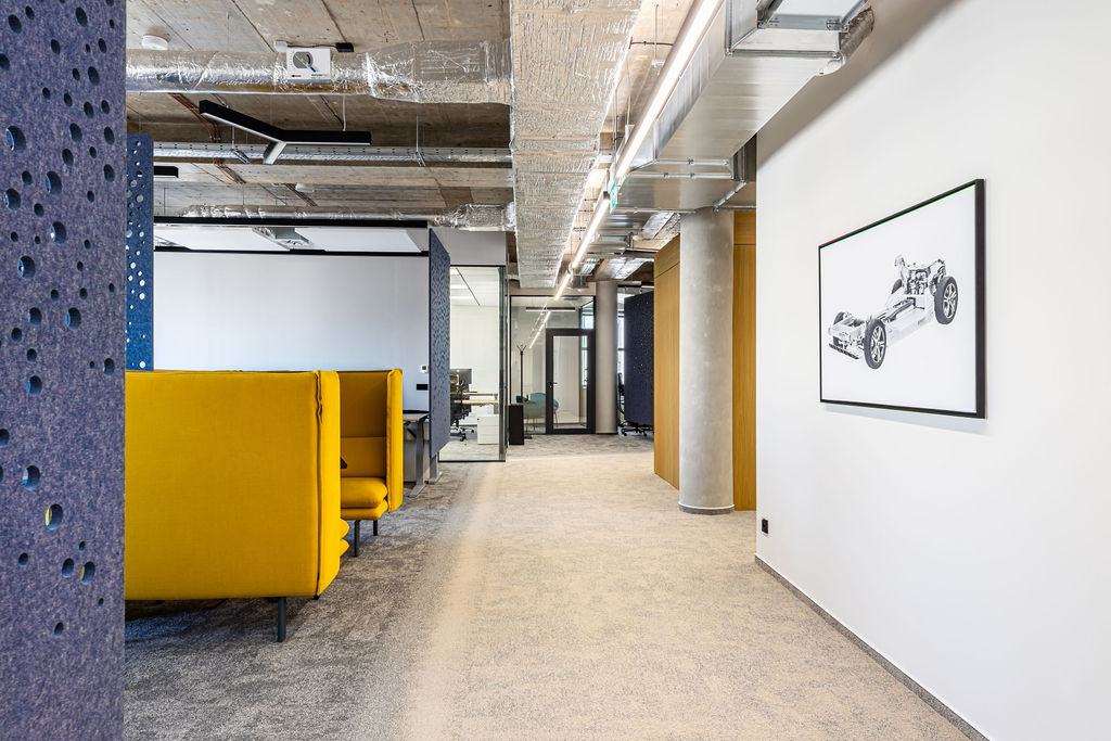 Jsme hrdí, že jsme mohli v rámci tohoto projektu přispět námi nabízenými produkty k modernímu a ergonomicky příjemnému pracovnímu prostředí. Pro pracovní místa jsme dodali výškově stavitelné stoly z naší řady cre8 PUZZLE s kabelovým managementem, doplněné pojízdnými kovovými kontejnery HermanMiller. Jednacími stoly stejné řady cre8 PUZZLE s označením Endow jsou vybaveny i zasedací místnosti. Akustickou a zároveň estetickou i dělící roli plní zavěšené panely ECHOCURTAIN od švýcarské společnosti EchoJazz, která z recyklovaného materiálu PET vyrábí nejrůznější designové produkty vylepšující akustickou pohodu v otevřených místnostech. Akustická je i pohodlná pohovka REW od španělské firmy Sancal. Celkový koncept pak doplňují židle LOTTUS a stolky PUNTO a BURIN také od španělských společností Enea a Viccarbe.
