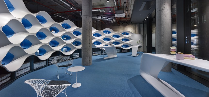 První nově otevřená prodejnu Crystalexu v Praze, v nové budově Masaryčky. Unikátní architektura světově proslulých architektů z ateliéru Zahy Hadid se tak propojuje s nádherným designem a tradicí českého sklářství. Pro tento křišťálový salón jsme dodaly legendární kousky z palety produktů značky Knoll: křesla a barové stoličky Bertoia doplněné stoly Saarinen, jejichž vzdušně lehký design vhodně doplňuje a ladí s křivkami skla s českým srdcem.