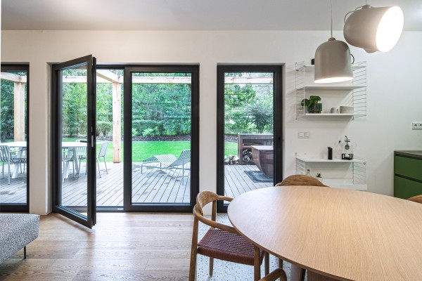 Ze stínu stromů historické rekreační osady vystupuje nově zrekonstruovaná dřevostavba. Katalogový domek německého původu prošel faceliftem a stal se z něj krásný dům, na který je radost pohledět a stejně tak v něm i bydlet. Proměnou prošly fasády opatřené thermoborovicovým obkladem v různé profilaci a rastrování. Stejně tak i interiér, který byl kompletně obměněn včetně veškerých povrchů, vestavěného nábytku i mobiliáře. Záměrem bylo vytvořit co nejprosvětlenější dům, ale zachovat všechny okolní vzrostlé stromy, které sice částečně brání přístupu přirozeného denního světla, ale dodávají pozemku neobyčejnou atmosféru.