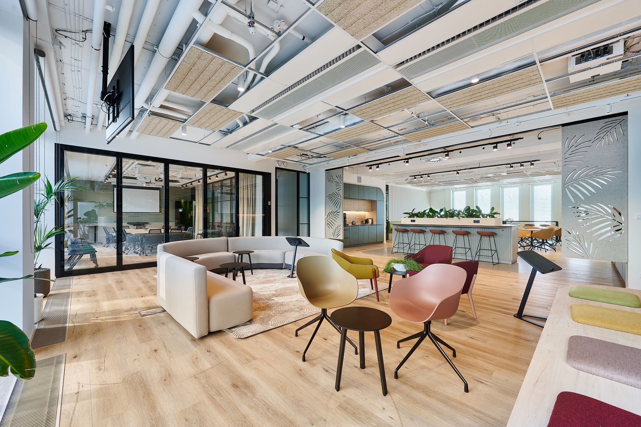 Pro vybavení nového sídla v Praze byla společnost cre8 vybrána jako dodavatel pro kompletní dodávku typizovaného nábytku. Jedná se tak o široký průřez námi nabízeného portfolia produktů většiny značek z naší nabídky. Vypíchnout bychom mohli rodinu chytrých, navzájem se doplňujících akustických budek Framery, pracovní židle HermanMiller, výškově stavitelné stoly cre8 PUZZLE HA, akustické doplňky a nábytek značek BuzziSpace a EchoJazz, akustické sezení NaughtOne a Sancal či třeba mobilní sklopné a skladné stoly Trilogy.