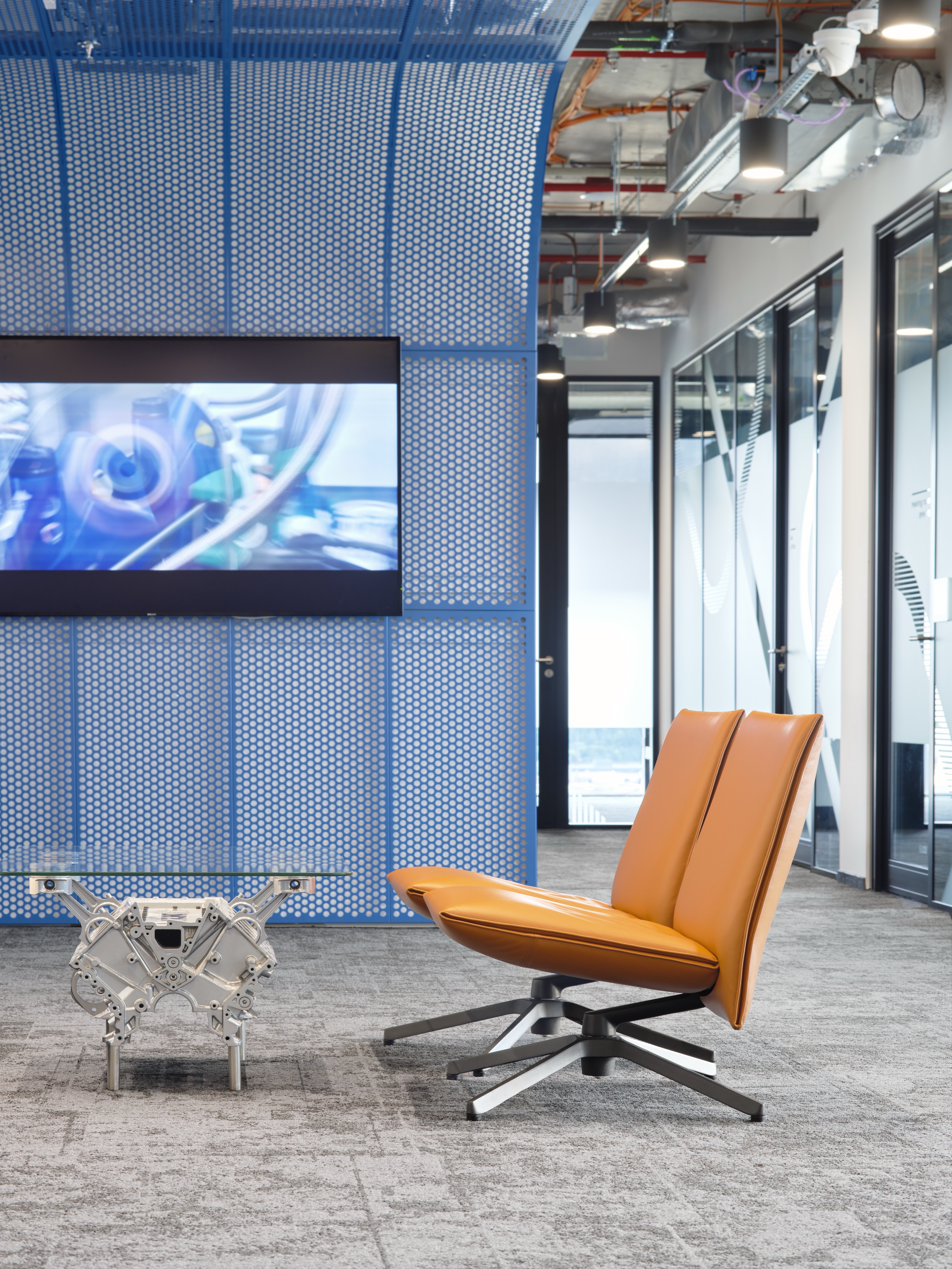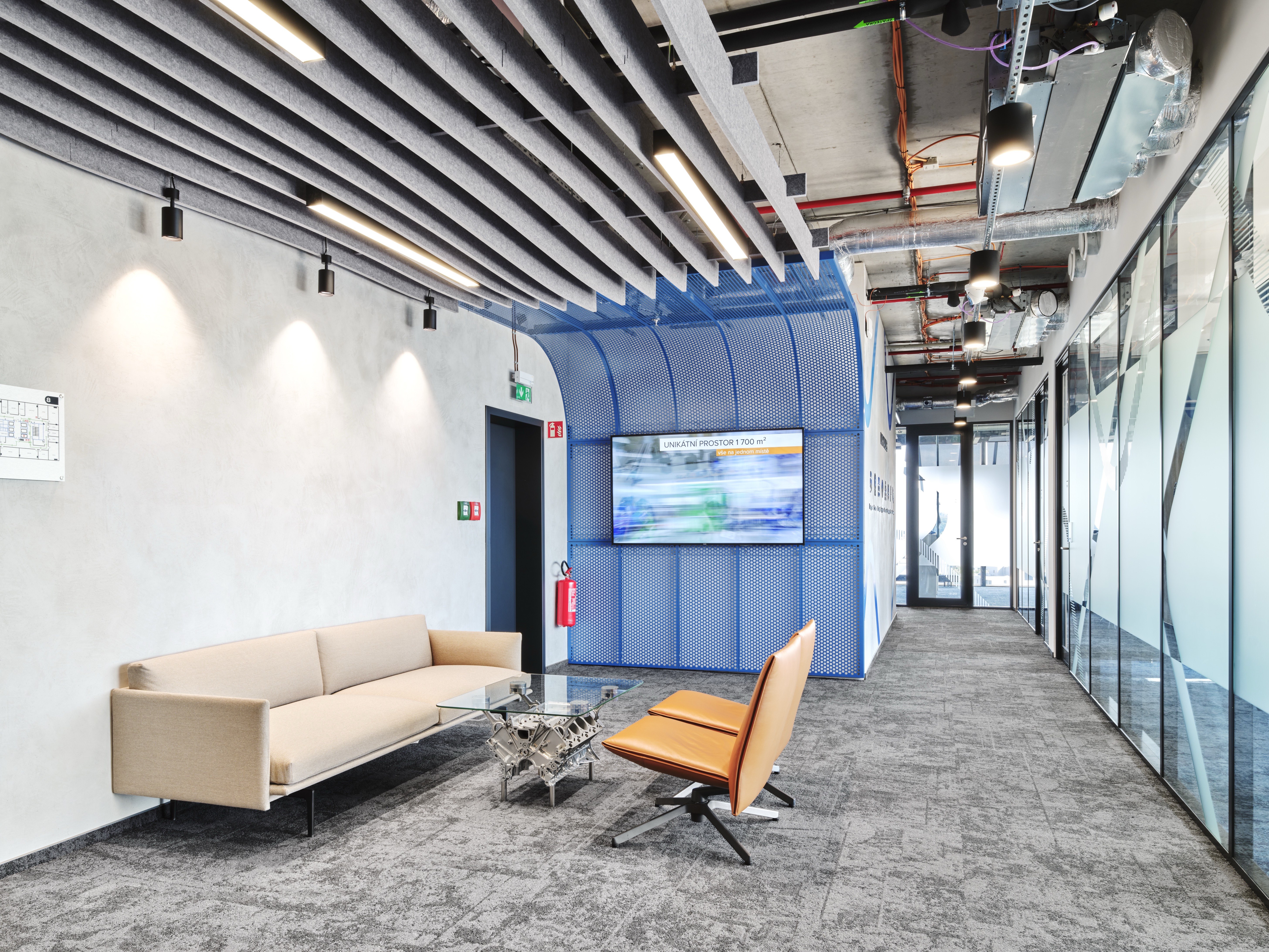 Pro oblast softseatingu byly zvoleny ověřené produkty značek Muuto, Viccarbe a Sancal, z designových produktů bychom pak mohli vypíchnout křesla PILOT od společnosti Knoll navržené designery Edwardem Barberem a Jayem Osgerbym.