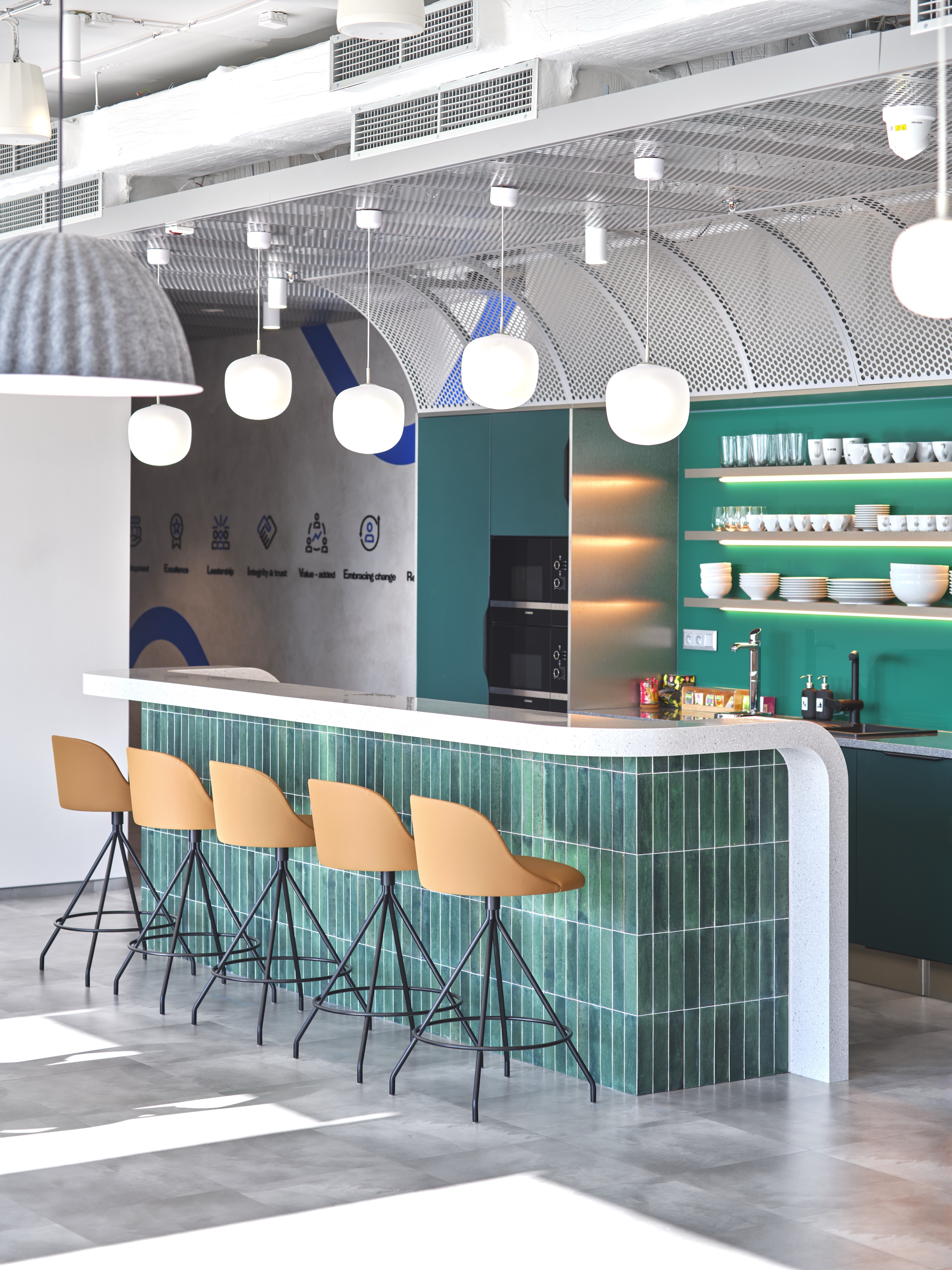Akustickou pohodu v poměrně otevřených a velmi vzdušných prostorech pomáhají zajišťovat produkty společností EchoJazz a Buzziskin, zejména pak smart akustické budky od společnosti Framery, ve variantách pro single hovory a meetingy i pro porady a schůzky pracovních minitýmů. Vše doplněno vhodným akustickým osvětlením a doplňky.