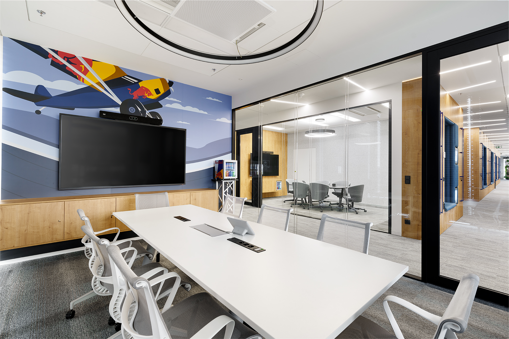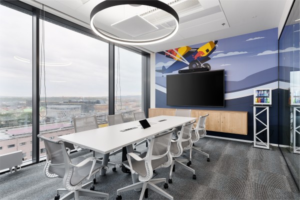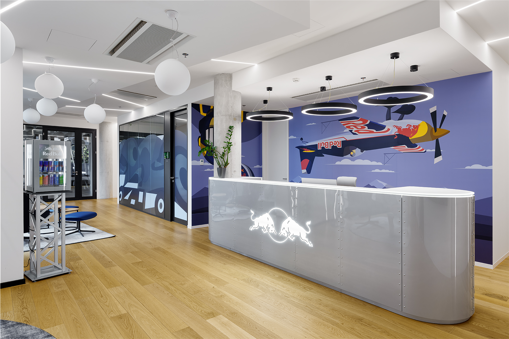 Pro celosvětově známého výrobce nápojů jsme pomohli vybavit revitalizované prostory pražských kanceláří. Ze svých stálic jsme pro značku rudého býka dodávali ergonomické židle HermanMiller doplňené výškově stavitelnými stoly cre8 Puzzle, designové barovky, stoly a stolky od dánských značek Muuto a Hay, softseating od španělských značek Sancal a Viccarbe a akustické doplňky BuzziSpace.