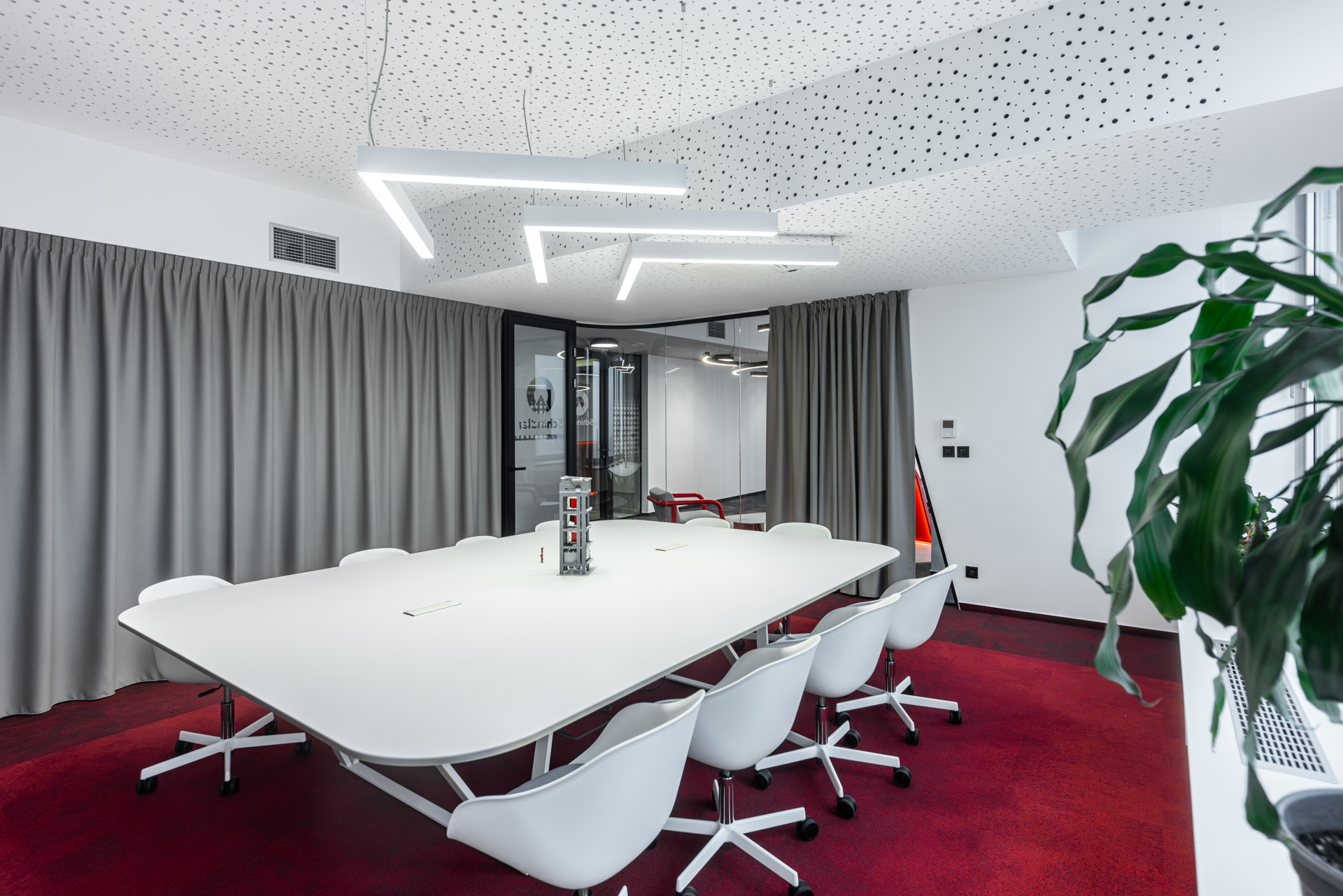 Společnost Schindler výtahy a eskalátory a.s. působí na slovenském trhu od roku 1995. Do nově vybaveného sídla v Bratislavě jsme dodávali ergonomické židle VERUS od HermanMiller a pracovní stoly velmi lehké, vzdušné konstrukce cre8 NOA, které spolu v kombinaci tvoří 38 pracovních míst vybavených dělícími stolními paravány a nadstolovými i podstolovými zásuvkami. Zasedací místnosti jsme vybavili konferenčními židlemi LORE od značky Enea. Dominantou na recepci společnosti jsou dvě designová křesílka PERCY od britské společnosti NaughtOne reflektující firemní barvy. Akustickou pohodu v prostorách openspace pomáhá řešit budka Framery Four, která může sloužit i jako malá zasedačka až pro čtyřčlenný mikrotým.