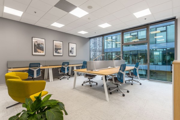 Nové sídlo společnosti v budově The Park číslo 2 na pražském Chodově jsme pomohli vybavit fixními pracovními stoly cre8 PUZZLE Endow X a pracovními židlemi HermanMiller VERUS Triflex. Protože se jedná o otevřený kancelářský prostor, soukromí pro telefonní hovory a akustickou pohodu pomáhá zajišťovat smart budka Framery ONE Compact. Netradičním prvkem jsou pak lehce industriální designová světla značky Muuto UNDER THE BELL. Potřebu "rychlého pracoviště" uspokojuje mobilní výškově stavitelný stolek PASSPORT od HermanMiller.
