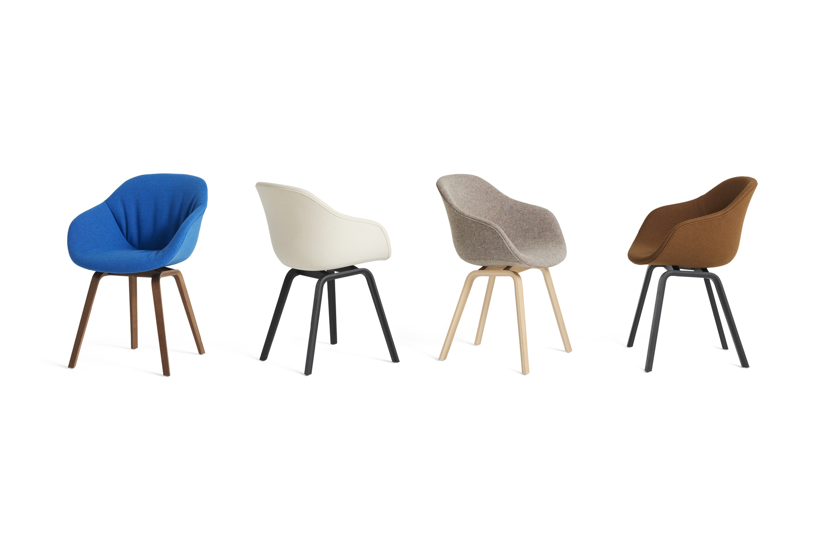 The AAC 223 fuses the natural elegance and classic expression of the four-legged wooden base with the softness of the upholstered shell. Retaining the fundamental idea shared by the AAC family, this model is characterised by a curved shell with a slightly higher back. Designed with optimal functionality in mind, the shell construction offers a deep, generous seat that combines inviting aesthetics with a high level of comfort, whilst the lower armrests provide good support and enable the chair to fit underneath a table or desk. The wooden base brings character and stability, and is available in different finishes, with the shell offered in a variety of regular and quilted upholstery options. The multitude of variants and design combinations give this series great versatility in a wide range of corporate, public, and private contexts.