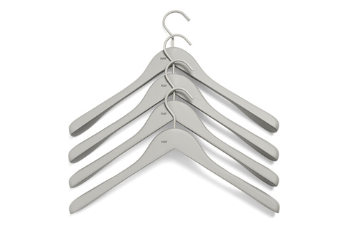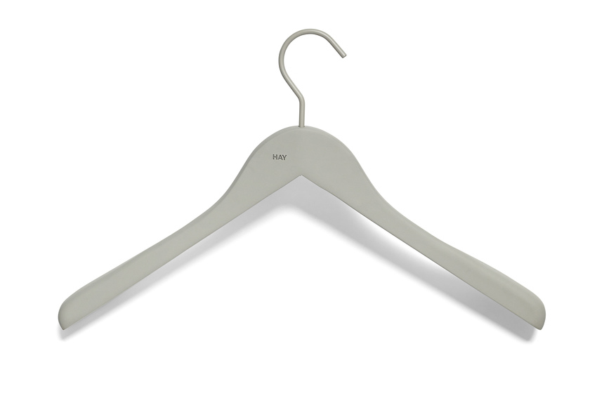 Soft Coat Hanger is a wooden hanger with broad shoulders and a matt rubber surface that provides added friction to keep coats and jackets in place.