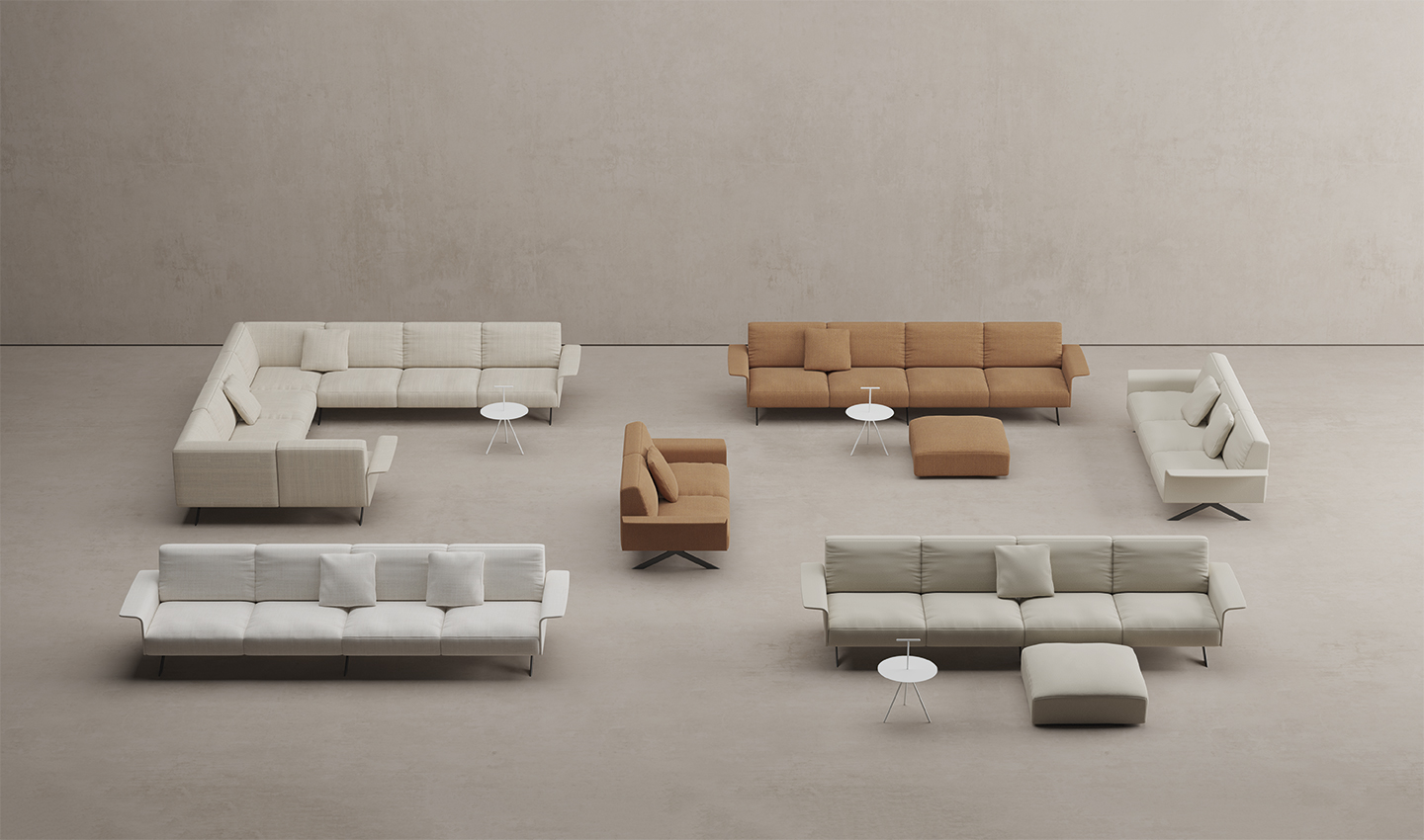 Ambitious vision and independence. Sistema Floor sofa is available for outdoor use.