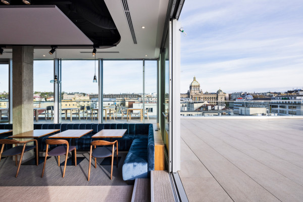 Flow Zone is a project realized on the roof of the amazing Flow building. The Flow Building, a unique project located on the corner of Wenceslas Square and Opletalova Street right in the business epicenter of Prague. The Flow Building is the first building in the Czech Republic to achieve the highest possible rating of "outstanding" according to the current BREEAM certification scheme. BREEAM is the leading international method of assessing the sustainability of buildings using third-party audit and certification, which ensures that certified buildings are the best examples of environmentally responsible construction in a global context. We participated in the roof terrace project as suppliers of free-standing furniture.