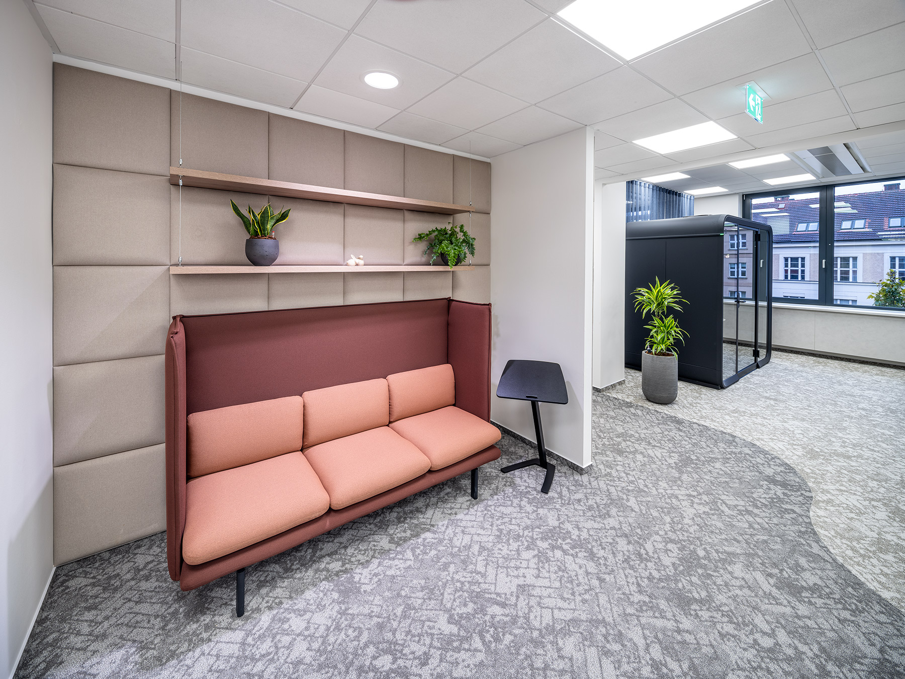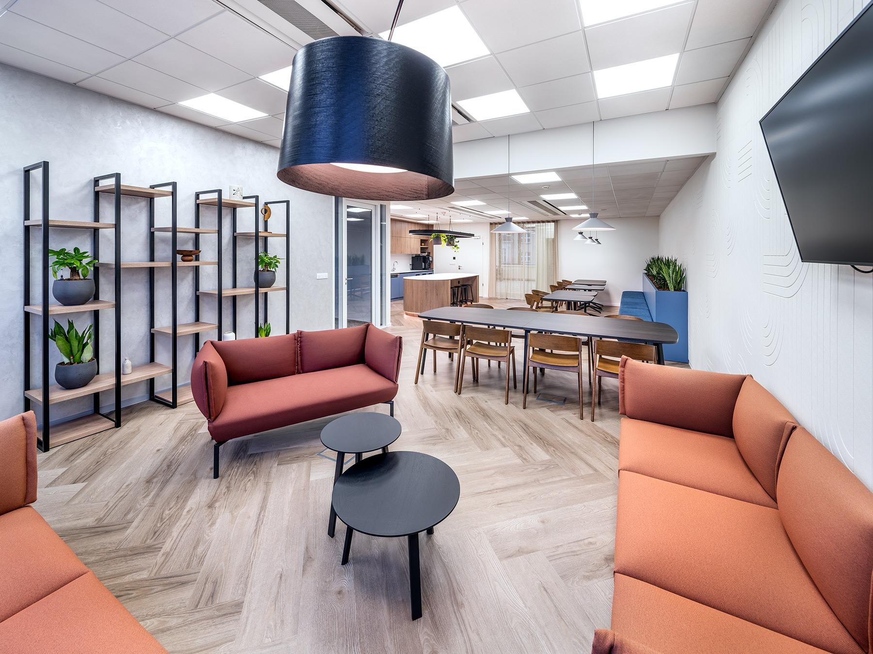 We had the opportunity to furnish their new offices with seating, ergonomic, and acoustic solutions from brands such as Herman Miller, HAY, Framery, BuzziSpace, Muuto, Sancal, and Enea, where we traditionally combined the modern aesthetics of Scandinavian design with the bold and expressive character of Southern European manufacturers. The overall atmosphere of the space is enhanced by functional accessories from MadeDesign and Lintex.